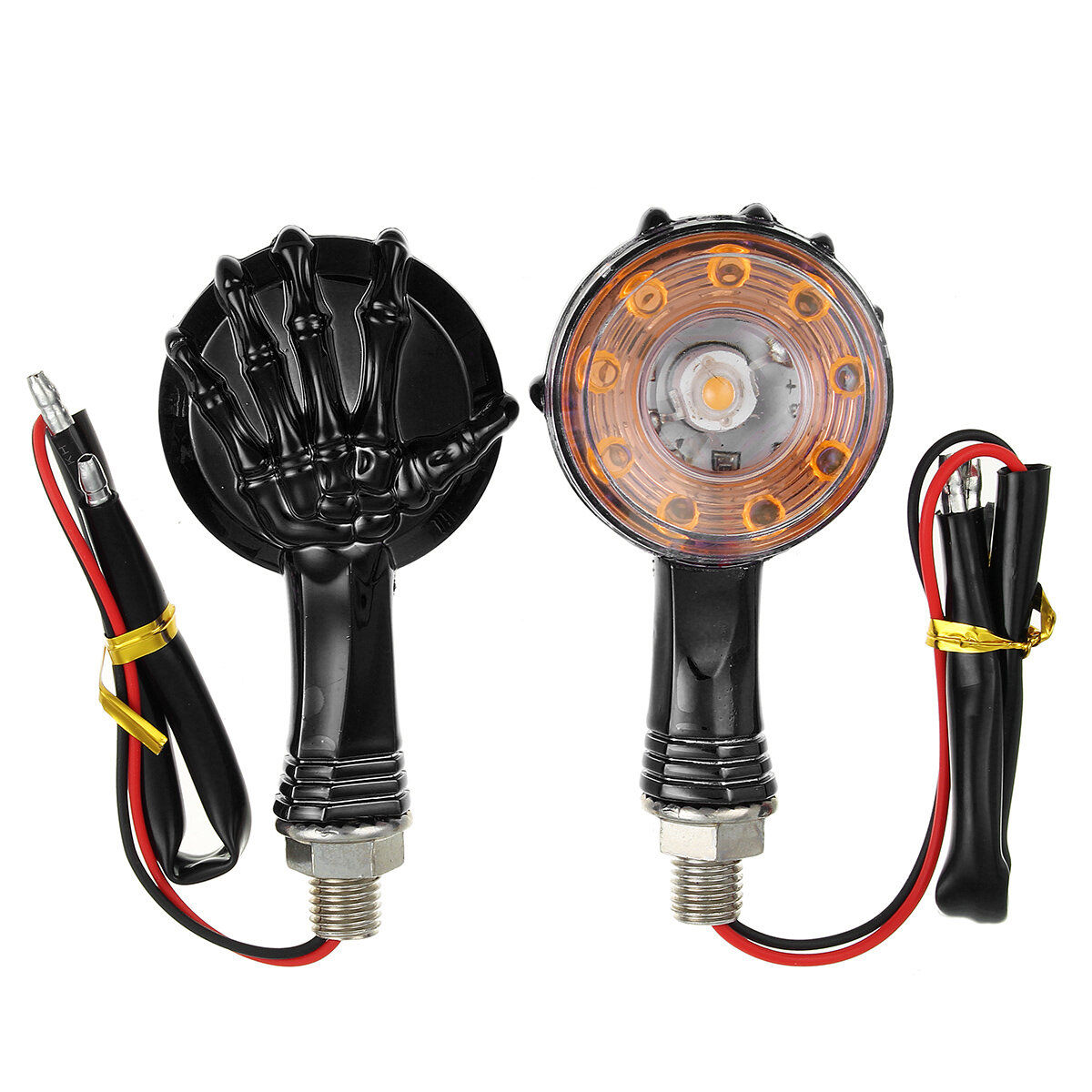 Pair Chrome Skull Skeleton LED Turn Signal Indicator Light For Davidson – Red