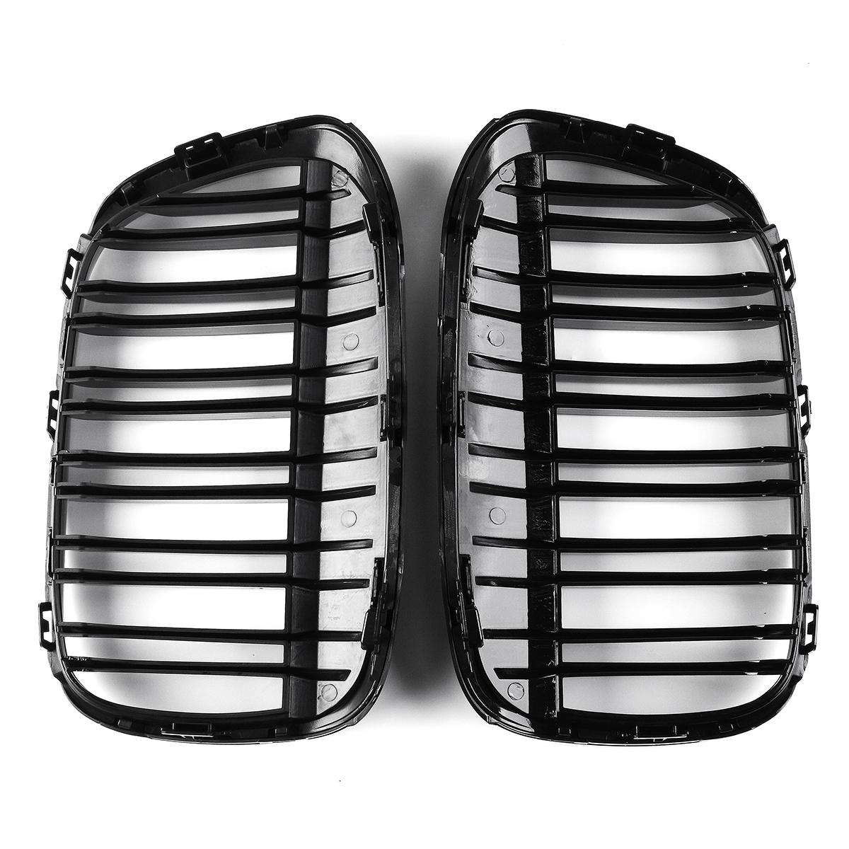 Pair Gloss Black Double Line Front Kidney Grille For BMW F48 F49 X1 2016-2017