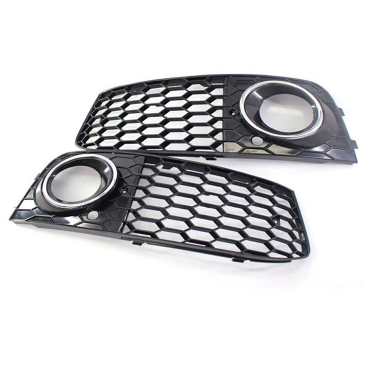 Feature: -Brand new RS4 style front bumper fog light grilles. -Made of high quality ABS plastic - same material as OEM. -Excellent fitment - direct replacement for your stock grilles. -Fully blacked out, with functional open mesh that matches the main grille. Don't waste your money on the ugly chrome trim version with closed mesh that other sellers carry.