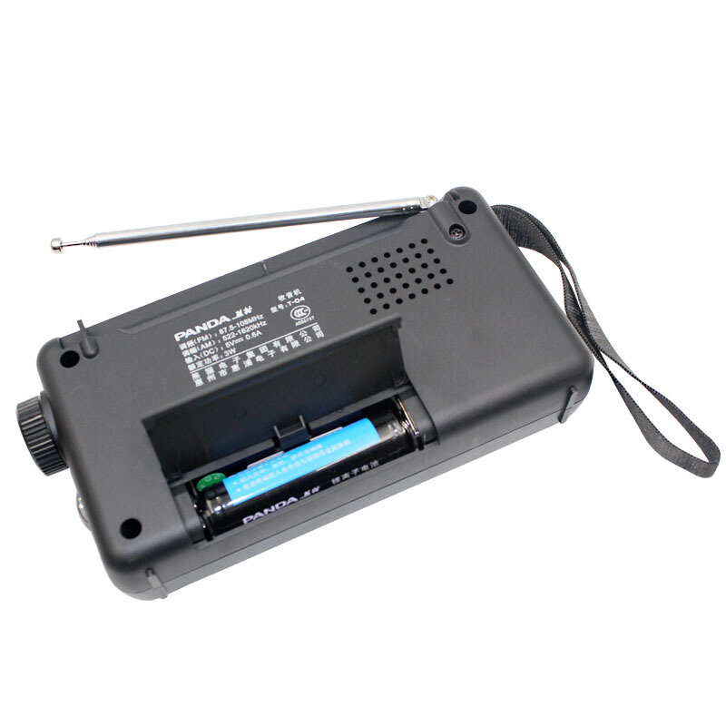 Panda T-04 FM AM Two Band Radio Semiconductor Portable Radio Support TF Card MP3 Player – Black