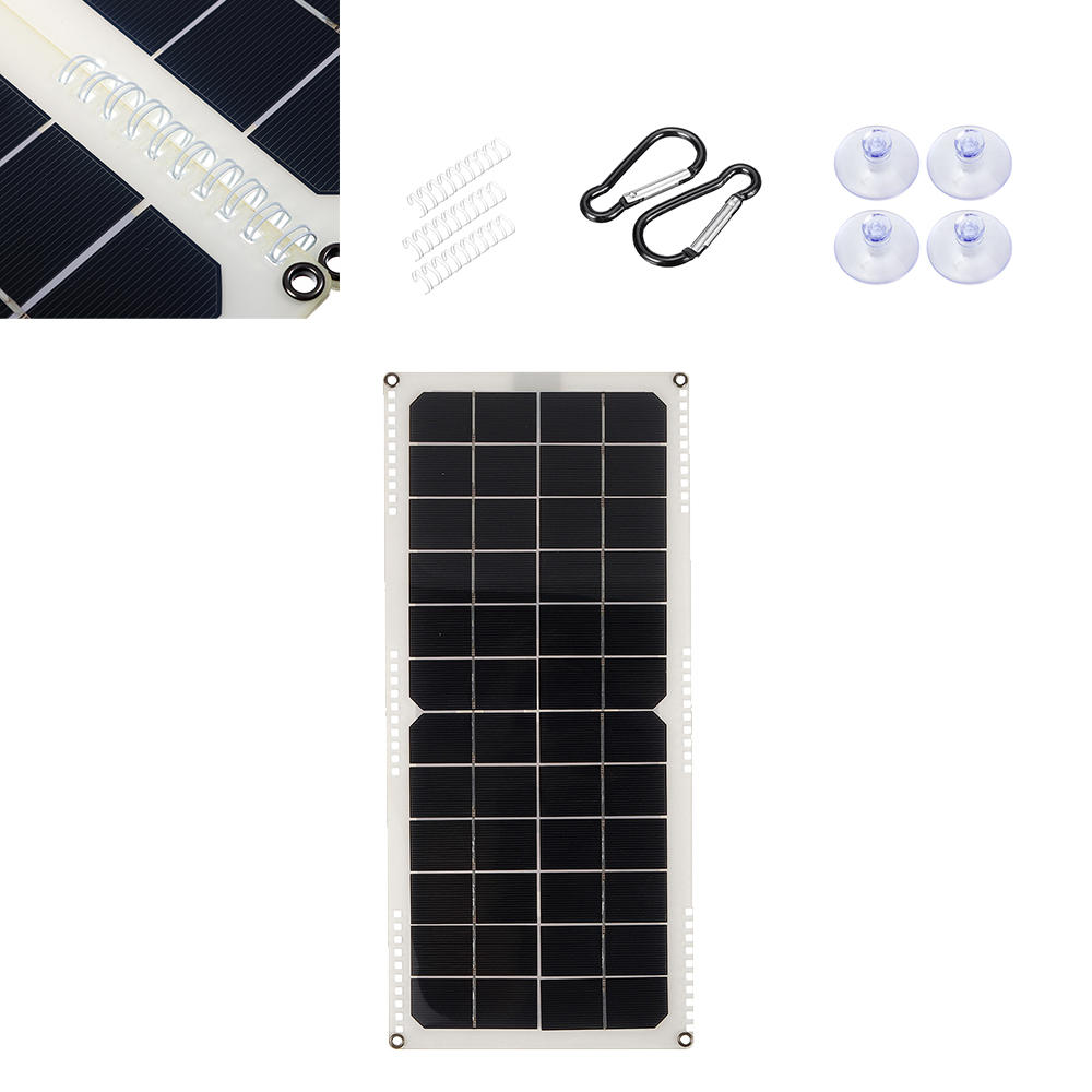 Panneau solaire semi-flexible en silicium monocristallin, 10 W, 14 V avec 3 supports de ressort 5V, boetier de connexion arriere USB + 12 V CC