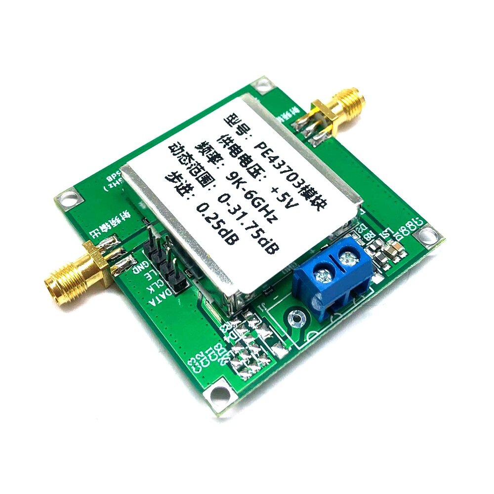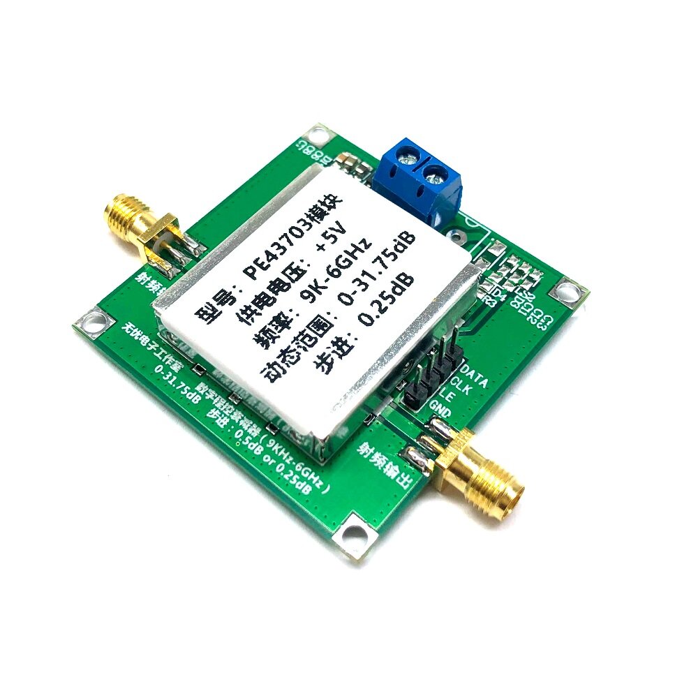 Le PE43703 est un attenuateur numerique RF 7 bits e haute linearite, "DSA" avec 0.25 dB pas e 31,75 dB d'attenuation. La gamme de frequences est de 9K-6GHz pour obtenir une attenuation. Ce DSA RF 50 ohms fournit des interfaces de contrele CMOS paralleles et serie fonctionnant sur une seule alimentation 5V et maintient une precision d'attenuation de haute frequence et de temperature. Il dispose egalement d'une interface de contrele unique qui permet e l'utilisateur de selectionner l'etat d'attenuation initial e la mise sous tension. Avec coque de blindage et diode de protection de connexion anti-retour.