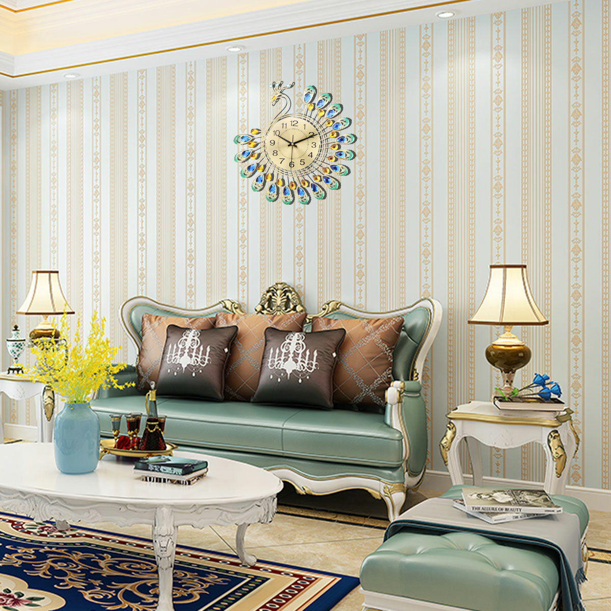 Peacock Horloge Murale Metal Salon Chambre Style Europeen Antique 38X38 cm