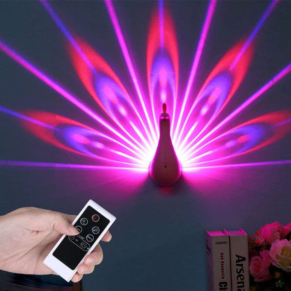 Peacock Projection Lamp LED Colorful Remote Control USB Charging Home Decoration Pink