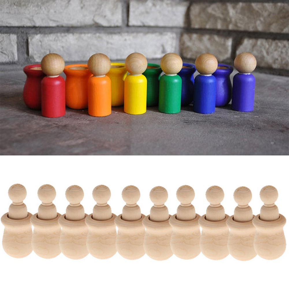 People Nesting Peg Dolls Wooden Unfinished DIY Decor Wedding Cake Topper Home Ornament Kids Toys Crafts 10PCS/Set