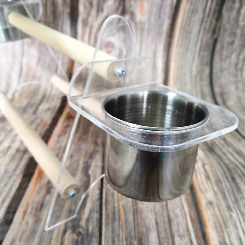 Top-ranking acrylic material, safe, long lasting. With cups design, easy for birds to eat or drink. Triangular stand design, easy to place on the table.