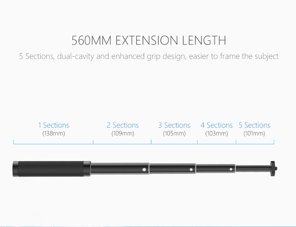 PGYTECH OSMO Pocket/Insta360 One X Extension Selfie Stick Pole Rod Scalable for DJI Mobile 2 Zhiyun Accessories black