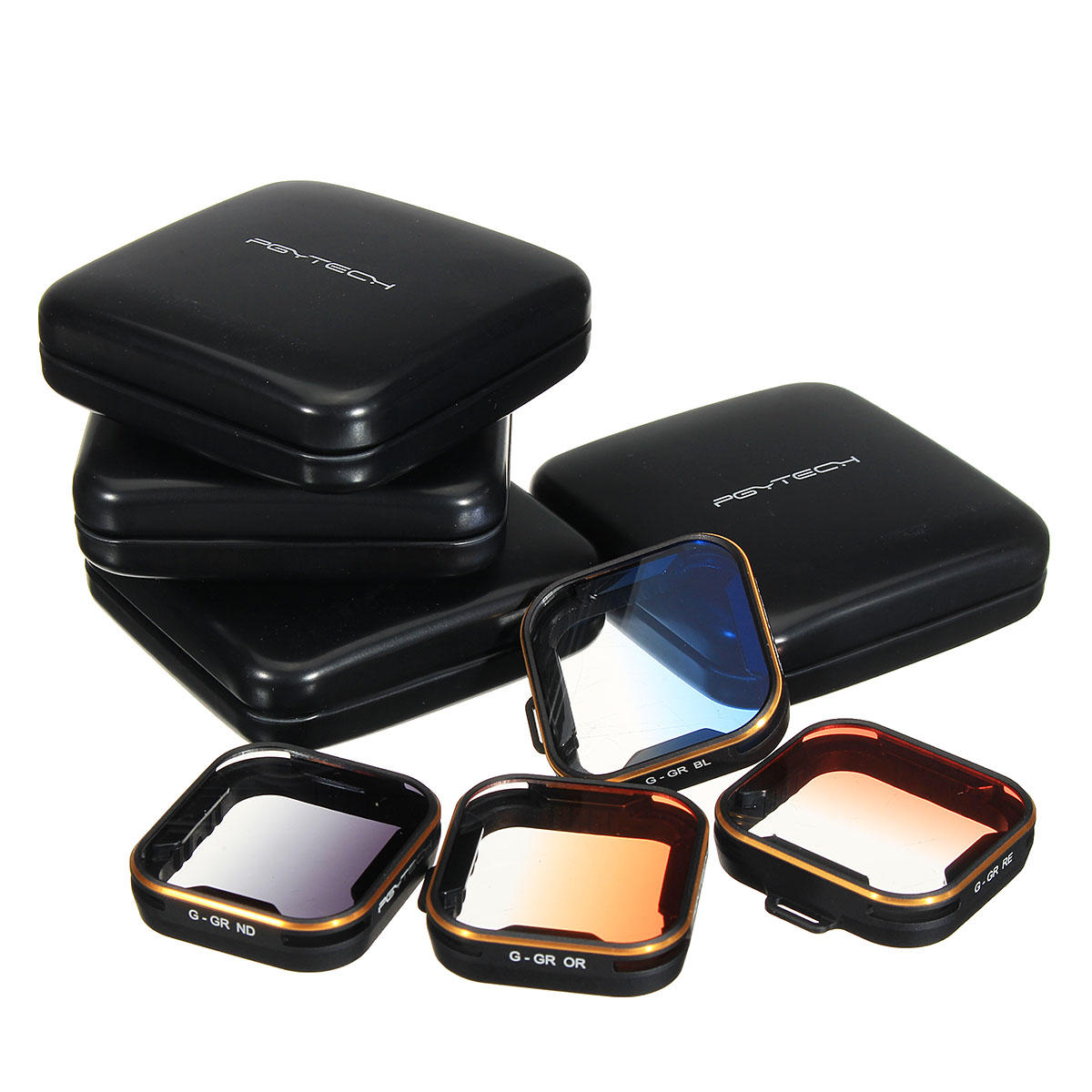 . Caracteristiques: Conception speciale pour la camera sport Gopro Hero 7, 6, 5 Cadre en aluminium aviation de haute qualite, conception resistante e l'usure legere, usinage CNC de haute precision. Le cadre interne du materiau souple TPU, empeche efficacement les dommages e la camera. Le cadre exterieur du materiau dur PC, prevention des pertes durables. Le traitement mat empeche efficacement la reflexion. Lentille avec verre optique, HD neest pas coupante, anti-moisissure, anti-fouling, prevention des pertes, protection efficace de la lentille. Demontage rapide, installation non destructive. Compatible avec: Pour la camera Gopro Hero 7, 6, 5 Sport Filtre de lentille: Gris degrade, Rouge degrade, Bleu degrade, Orange degrade Materiau du cadre: Alliage d'aluminium d'aviation; TPU & PC Materiau de l'objectif: Verre optique; Revetement multicouche Cadre: cadre ultra-mince Taille du produit: 30 x 27 x 6 mm / 1,18 x 1,06 x 0,24 pouces Taille de l'emballage: 70 x 62,5 x 20 mm / 2,8 x 2,5 x 0,8 pouces Poids: 10g Effet de filtre d'objectif de plongee: Filtre de lentille rouge degrade: appliquer pour ameliorer la teinte rouge de l'image afin que la scene soit plus vive et superposee. Ideal pour photographier Maple Leaf, coucher de soleil, coucher de soleil, nuage de feu, desert du soir, scenes de dunes de sable. Filtre e lentille orange degrade: principalement utilise pour photographier le lever et le coucher du soleil, la scene est devenue plus stratifiee et dynamique. Filtre e lentille bleu degrade: convient aux intemperies, e la forte lueur ou au brouillard, le ciel peut etre retabli en nuages bleus et silhouettes, le ciel est plus bleu, le nuage est plus blanc, sans affecter le fond du ton e une bonne couleur equilibre. Filtre e lentille gris degrade: principalement utilise lorsque le ciel et le bas de la lumiere sont grands pour resoudre le probleme de la surexposition au ciel. Dans le cas de sol normal, les images montrent en meme temps une richesse de nuages et de couleurs. Emballage inclus: 1 x filtre de degrade PGYTECH P-G5-114 1 x etui de rangement