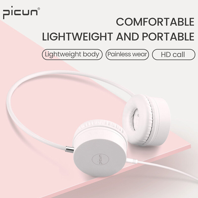 Picun C20 casque filaire sur l’oreille casque stereo basse ecouteurs HiFi son musique avec micro pour telephone PC – 110 Blanc