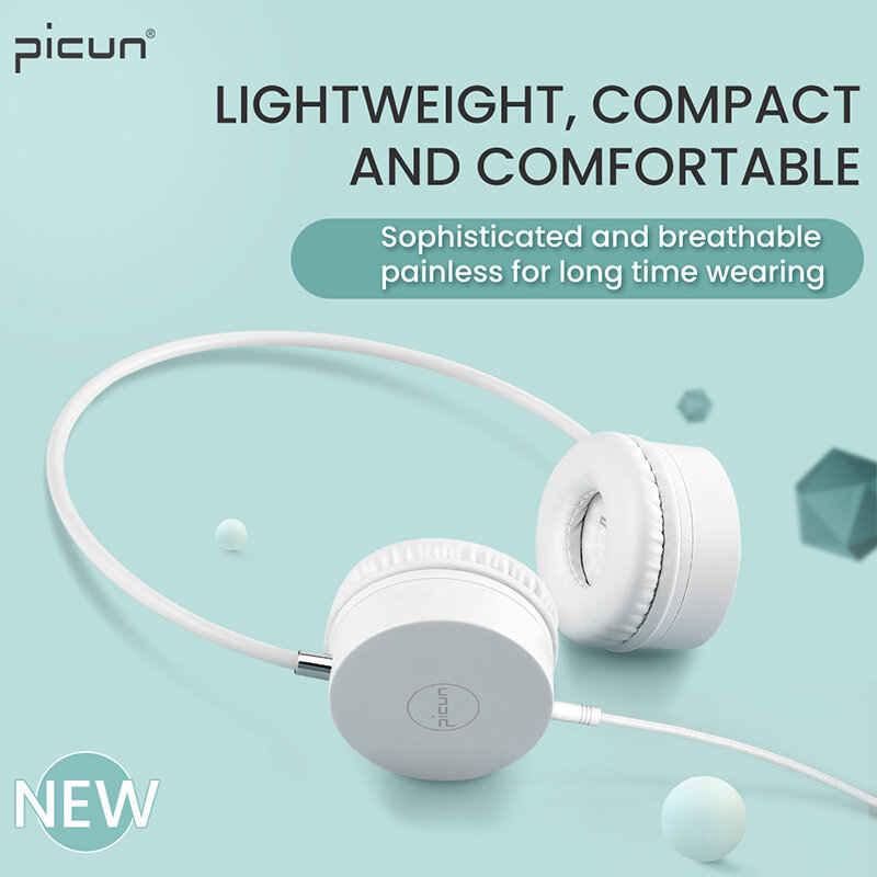 Picun C20 Wired Headphones Over Ear Headset Stereo Bass Earphones HiFi Sound Music with Mic for phone PC – 110 White