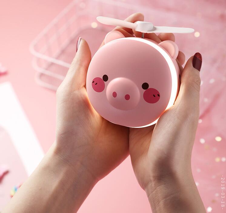 Portable Handheld Fan with LED Fill Light Makeup Mirror Mini USB Charging Pink Pig Winking Fan_8.5 * 3.5 10 quantity