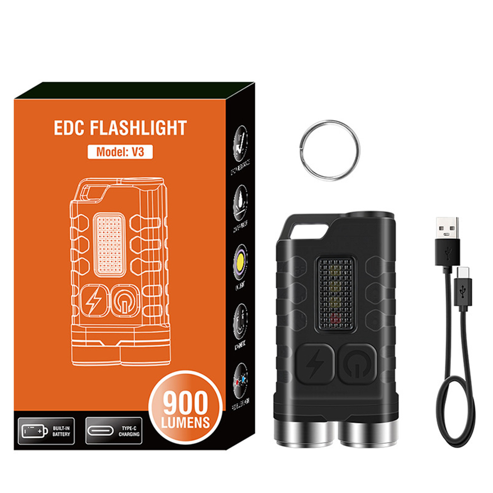 Portable Led Mini Flashlight with Side Light 900 Lumens USB Charging Torch Outdoor Emergency Lighting Tool V3 Black