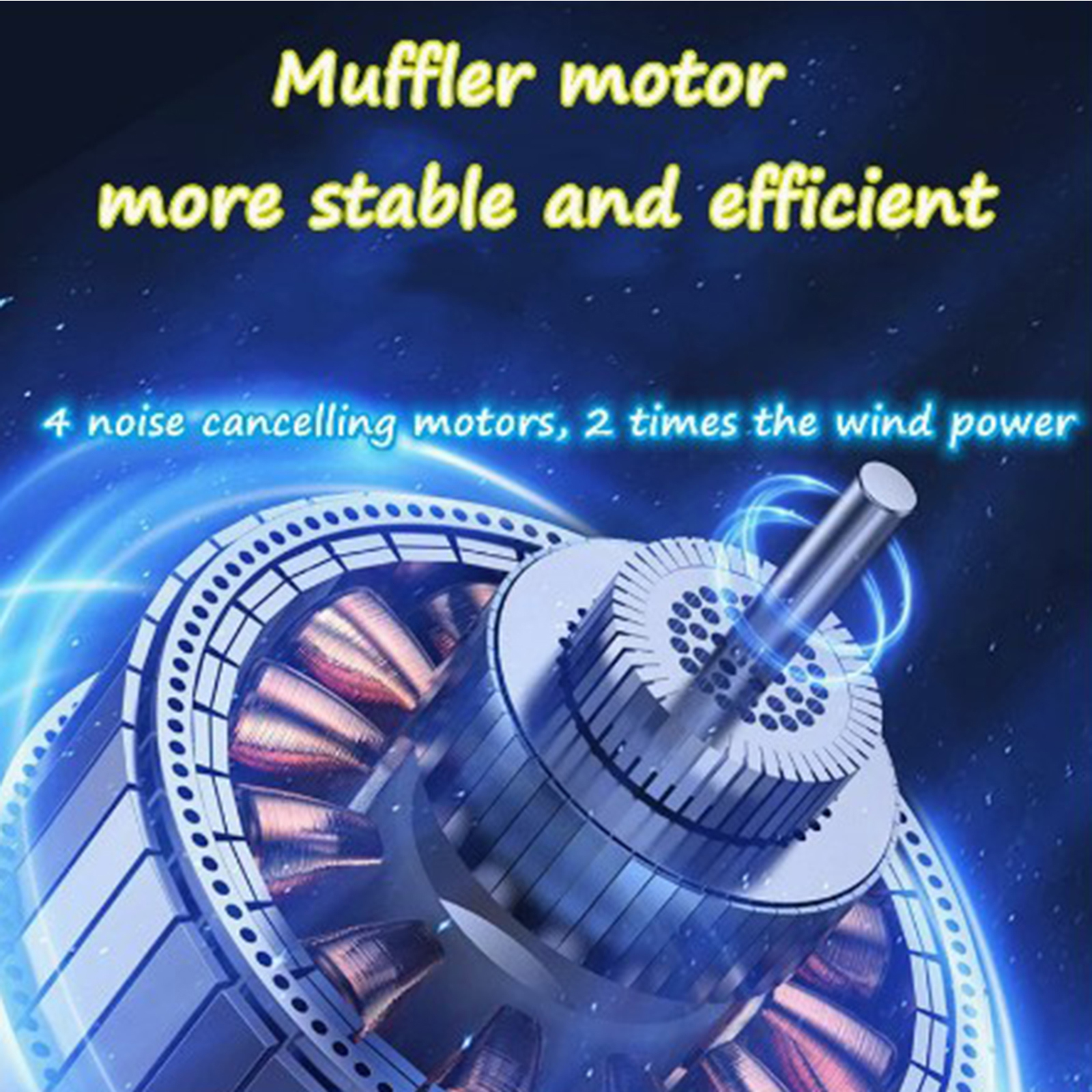Quad-core power mute and windy Large-capacity battery lasts for a long time Easy to carry and adjustable angle 3-block wind speed can be adjusted 360° Surround Blower