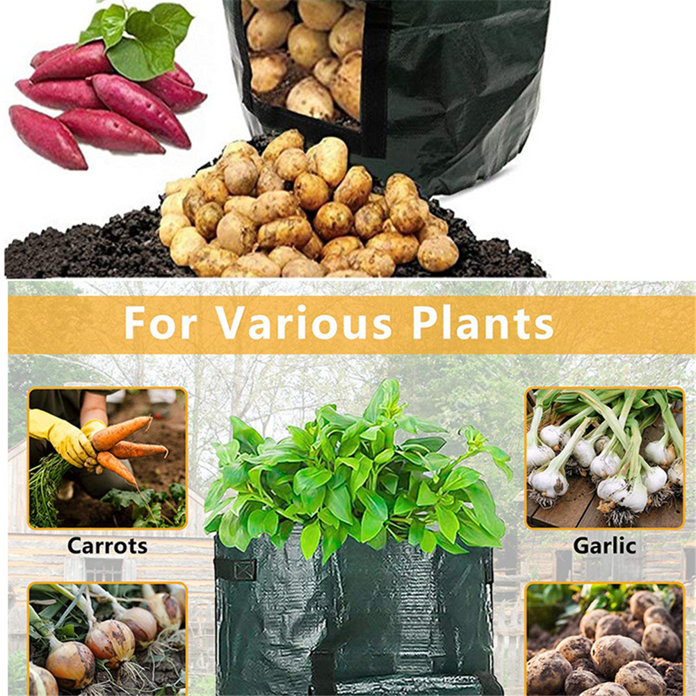 Made of PE material: environmentally friendly, waterproof, anti-corrosion, heat-resistant, cold-resistant and sturdy Equipped with side windows: facilitate your harvesting of potatoes, and a double-handle planting bag is convenient for you to move. Small holes at the bottom: drainage holes that help plants grow better. Reusable: light weight, economical and practical, and can be folded for storage when not in use. Wid application: suitable for family balconies, gardens or other outdoor places.