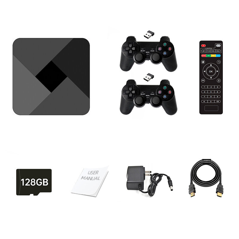 Powkiddy B-01 64GB 128 Go 40000 Jeux Console de jeux TV retro 2.4G Wifi Android 7.1 TV Box pour PS1 N64 ATARI MD FC Classic Jeux Support de lecteur Telecharger des jeux GameBox – 64G Ceble