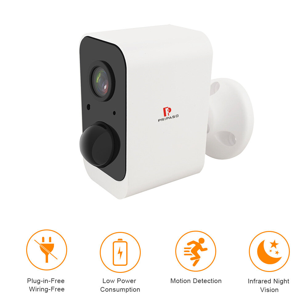 Pripaso 1080P sans fil Batterie camera WiFi alimentee camera de securite exterieure camera IP etanche Rechargeable Batterie camera