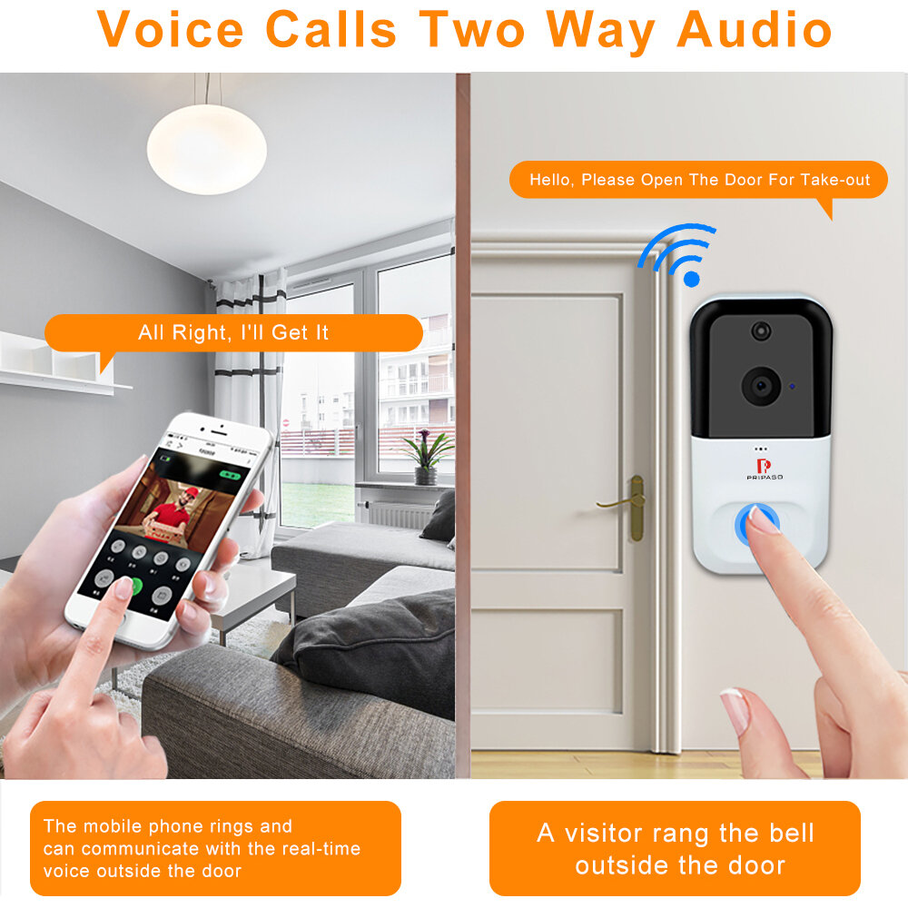 Pripaso Smart 720P Interphone Appel Telephonique Porte Cloche Camera IP Sans Fil Wifi Video Sonnette Infrarouge Vision Nocturne avec 32G TF Carte