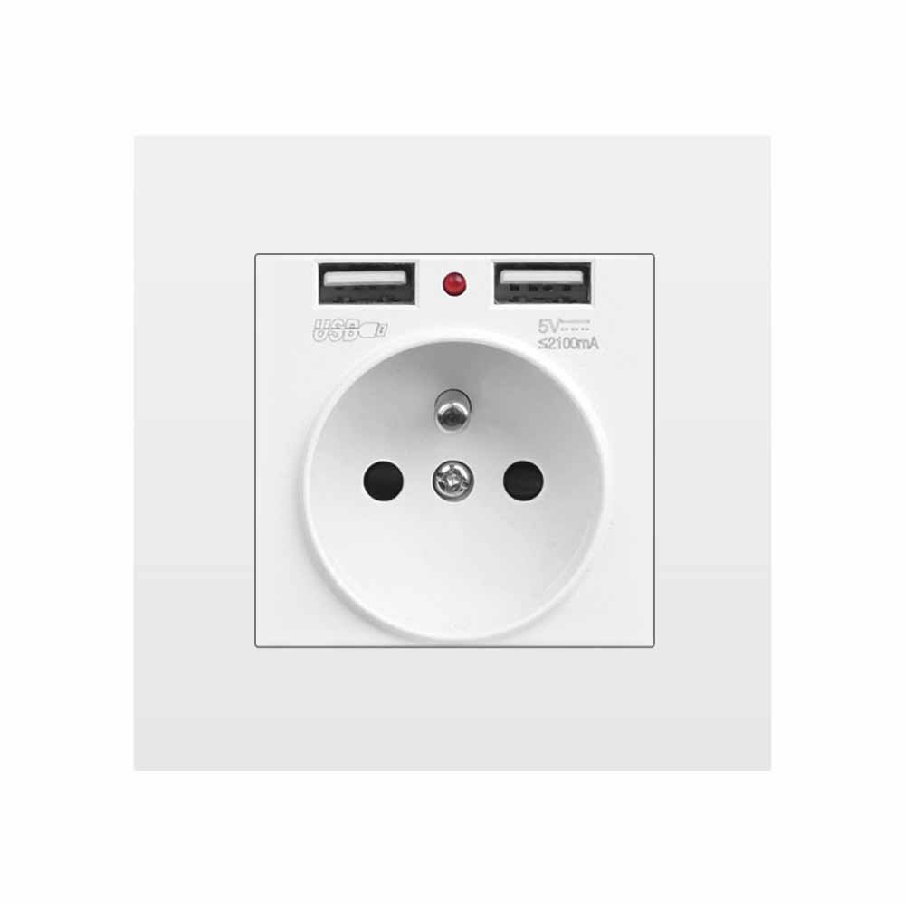 Prise d’alimentation EU avec double port USB 16A 250V Panneau PC 86 mm x 86 mm – Type B