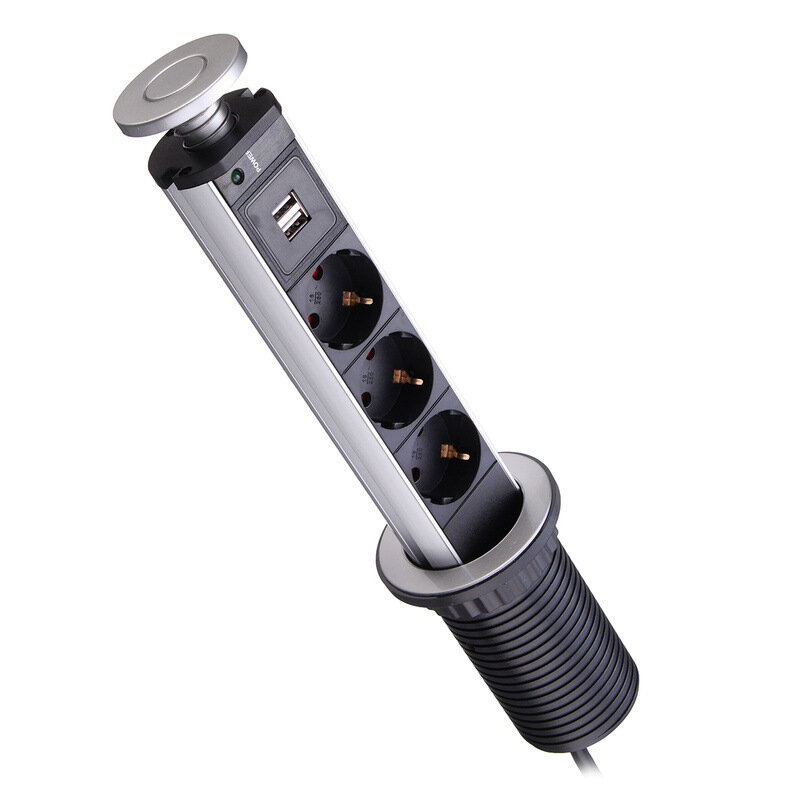 Prise de style europeen 3 prise d’alimentation Port de charge USB Prise de table de cuisine retractable