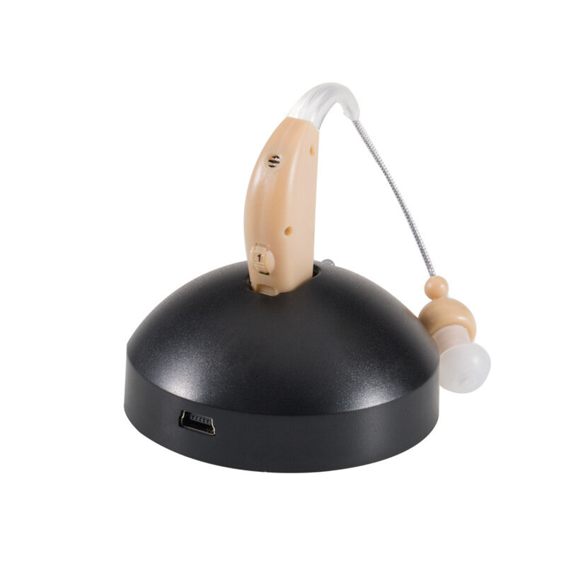 Protheses auditives reglables portatives de reduction de bruit d’amplificateur de son rechargeable avec base de charge – Prise americaine