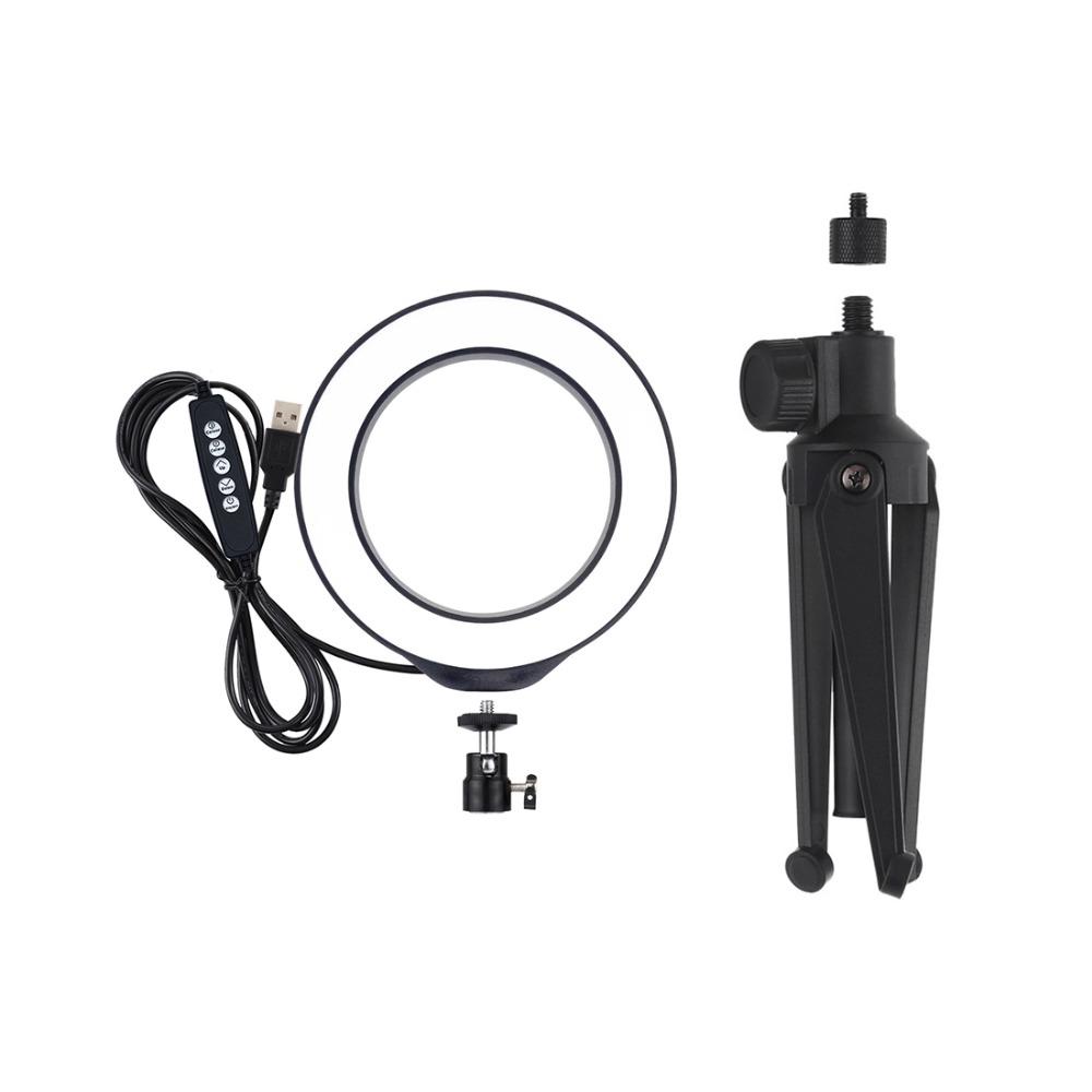 . Traits: Anneau LED Light La lumiere annulaire e LED peut etre montee sur le support et l'emporter n'importe oe, elle peut egalement etre retiree du support e tout moment, la rotule du trepied peut pivoter e 360 degres peut librement s'ajuster e n'importe quel angle (le support n'est pas inclus). La lumiere annulaire est composee de 28 perles LED e economie d'energie, sa dissipation thermique est excellente, son courant constant et son rendu des couleurs eleve, adoucit la source de lumiere et ameliore le teint de la peau dans la photographie de portraits. Couleurs RVB mode d'eclairage luminosite reglable pour votre choix, vous pouvez regler la couleur et la luminosite tres facilement, une luminosite parfaite peut etre obtenue sans installer de filtres colores supplementaires. Differentes couleurs de lumiere naturelle douce illuminent votre beaute e differentes occasions. Application etendue: il est largement applique e la lumiere de photo exterieure, e la lumiere de remplissage e l'interieur, au portrait, e la mode, e la photographie publicitaire, e la prise de vue video, etc. Conception legere et portable: pratique e utiliser et e transporter lorsque vous voyagez ou travaillez e l'exterieur, etc. Support de bureau Les triples jambes offrent une stabilite en charge. Fabrique en plastique epais et robuste, parfait pour filmer des sequences de sports d'action sous un angle fixe. Conception legere et portable. Avec le tube metallique central et le bouton de rotation, la hauteur du support de trepied peut etre ajustee. De petite taille, peut etre place partout et prend moins de place, il peut egalement etre retire dans le carton, tres pratique. Specifications de la bague LED Perles LED: 28pcs SMD 5050 RGBW Puissance maximale: 12 W (USB 5V 2.4A) Couleur de la lumiere: RVB + blanc Couleur claire: Rouge: longueur d'onde 620-625nm, flux lumineux 600mcd / Lm Vert: longueur d'onde 520-525nm, flux lumineux 1000mcd / Lm Bleu: longueur d'onde 460-465nm, flux lumineux 400mcd / Lm Blanc: temperature de couleur 6000-6500k Emballage inclus: 1 x PULUZ anneau lumineux 1 x support d'eclairage Puluz