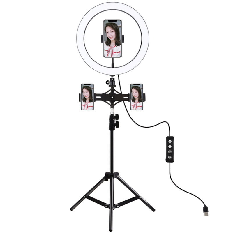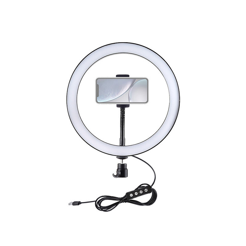 La lumiere annulaire LED peut etre montee sur le support et l'emmener partout, elle peut egalement etre retiree du support e tout moment, la rotule du trepied peut pivoter e 360 degres et peut s'adapter e n'importe quel angle.
