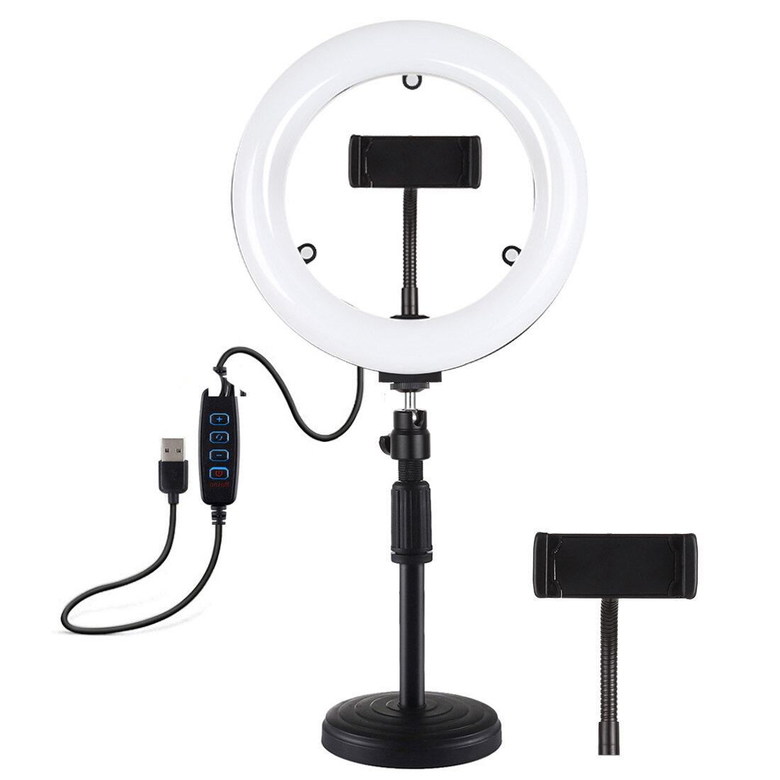 PULUZ PKT3079B 7,9 pouces 3 modes Dimmable USB LED anneau lumineux incurve avec support de telephone de bureau e base ronde pour Selfie Youtube Vlog