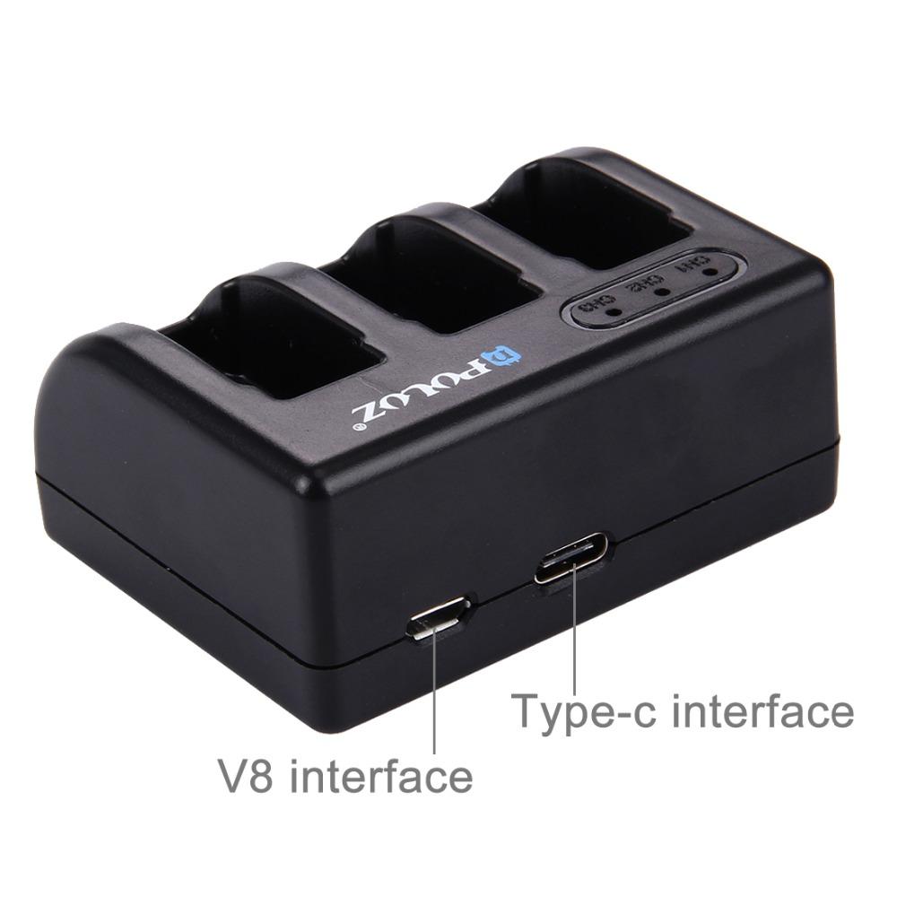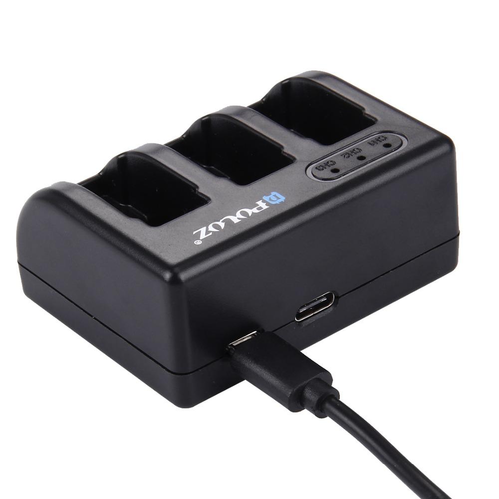 PULUZ PU185 3 canaux Batterie Chargeur Micro USB Type-C Port pour GoPro HERO5 AHDBT-501