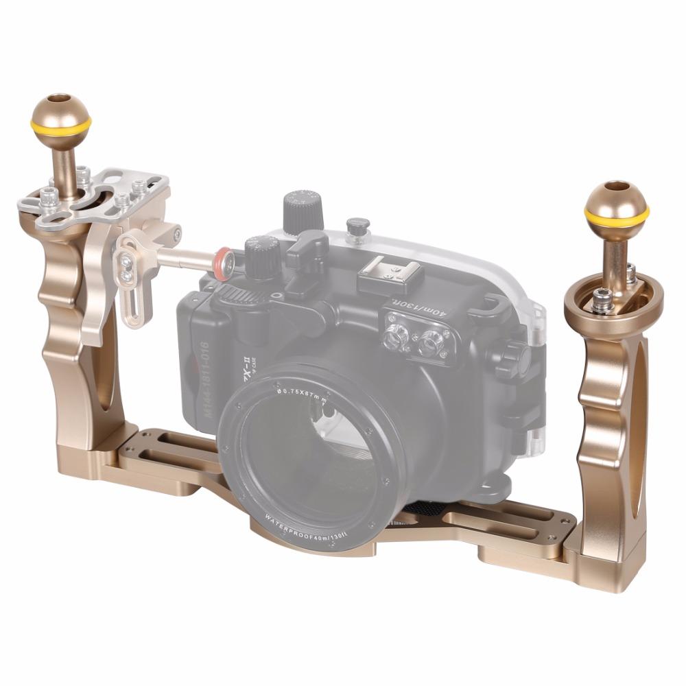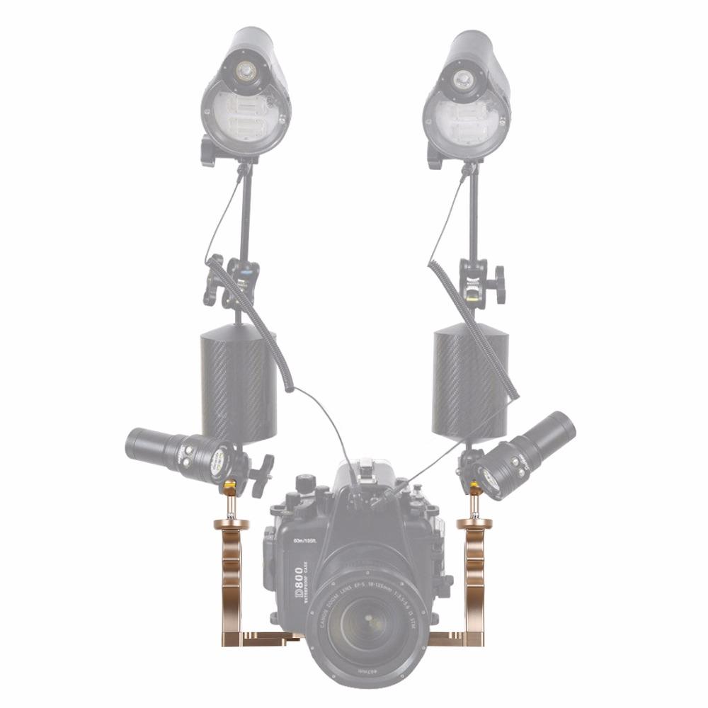 Ce double plateau de camera est leger et fonctionnera avec presque toutes les combinaisons de camera et de lumiere video (certaines necessiteront un adaptateur supplementaire). Le plateau sous-marin permettra de monter tout type de lampe video