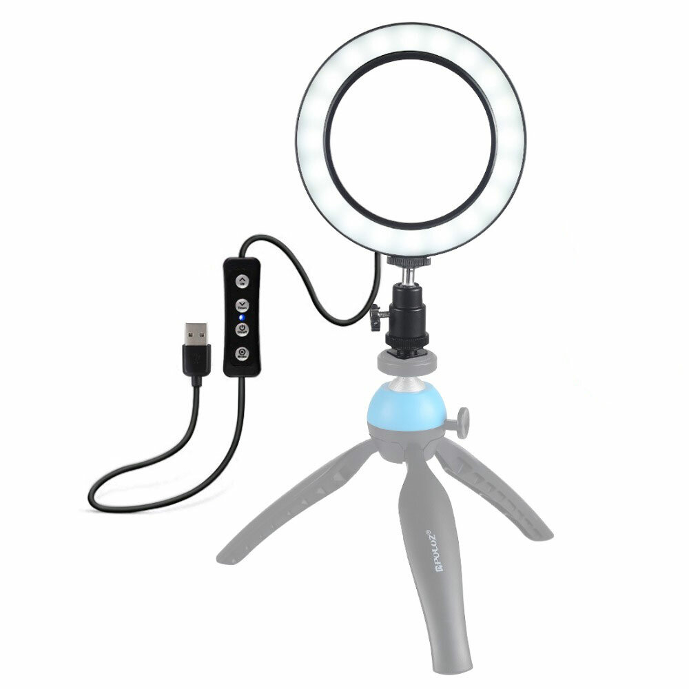 PULUZ PU377 USB 4.6 pouces 3 modes 3200K-5500K dimmable LED anneau lumineux video avec tete de trepied e chaussure froide