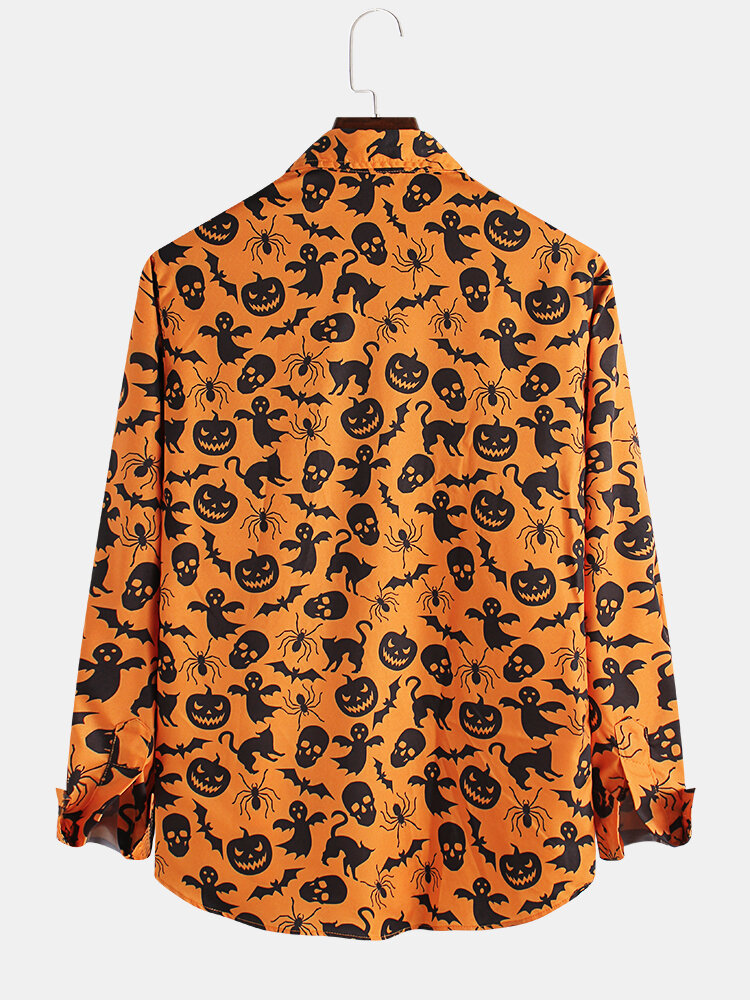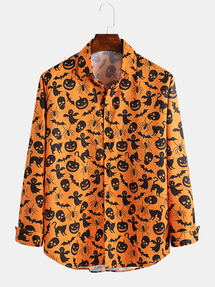 Item Type: Shirts Pattern Type: Pumpkin PrintingGender: Men Fit Type: FitStyle: Casual,Fashion Thickness: RegularCollar: Turn Down Collar Season: Spring, AutumnMaterial: PolyesterSleeve Length: Long SleeveColor: YellowCuff Type: Shirt Sleeve Occasion: Leisure,Home,Daylife Package includes