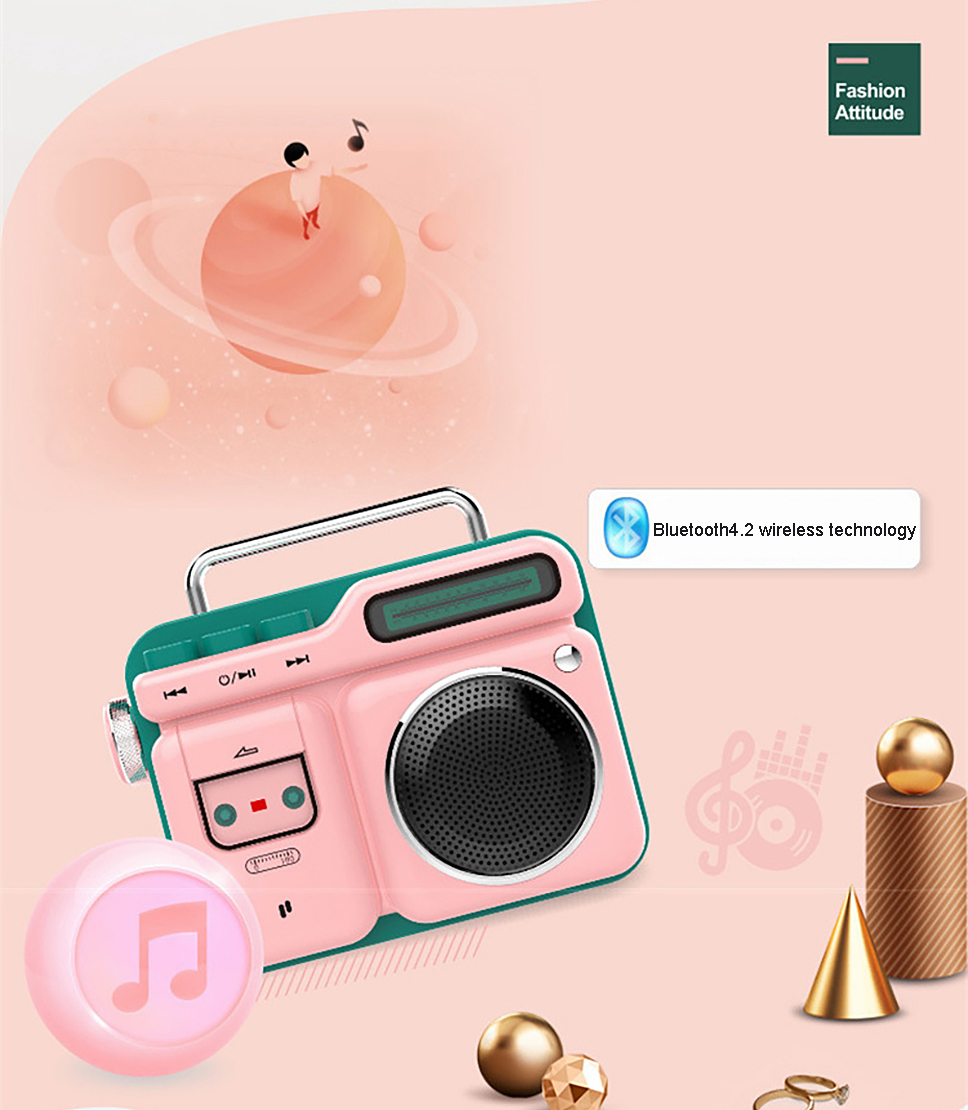 Bluetooth Speaker Retro Mini Cute HiFi Wireless With Enhanced Bass 3D Stereo Sound blue