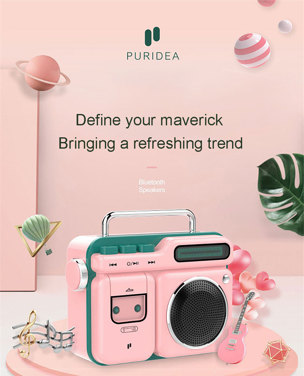 PURIDEA MOCA Portable Bluetooth Speaker Retro Radio-shaped Mini Stereo Loundspeaker green