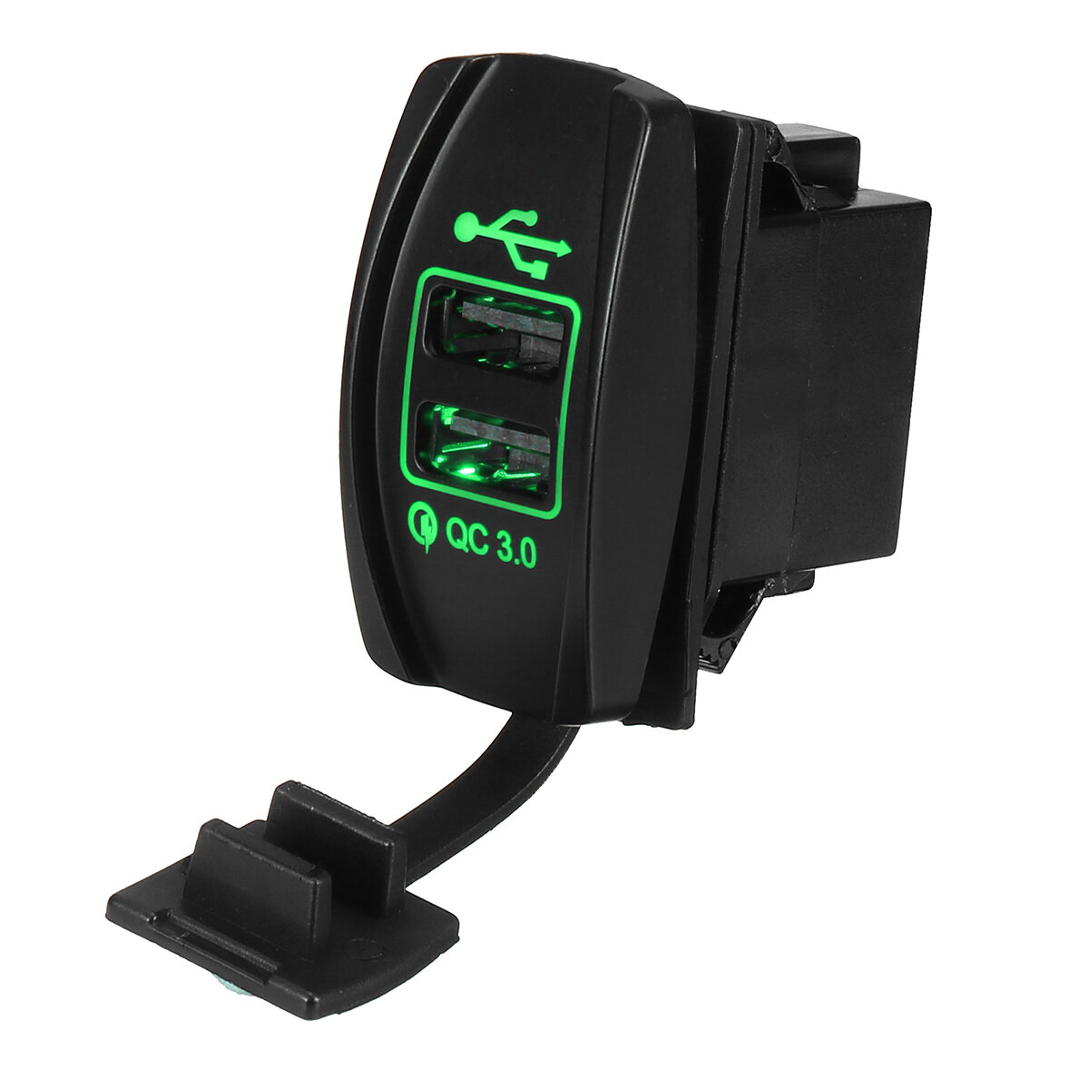 QC3.0 36W 5V3.1A/9V2A/12V1.5A Dual USB Fast Charger Socket Outlet On Off Switch For Car Motorcycle – Green