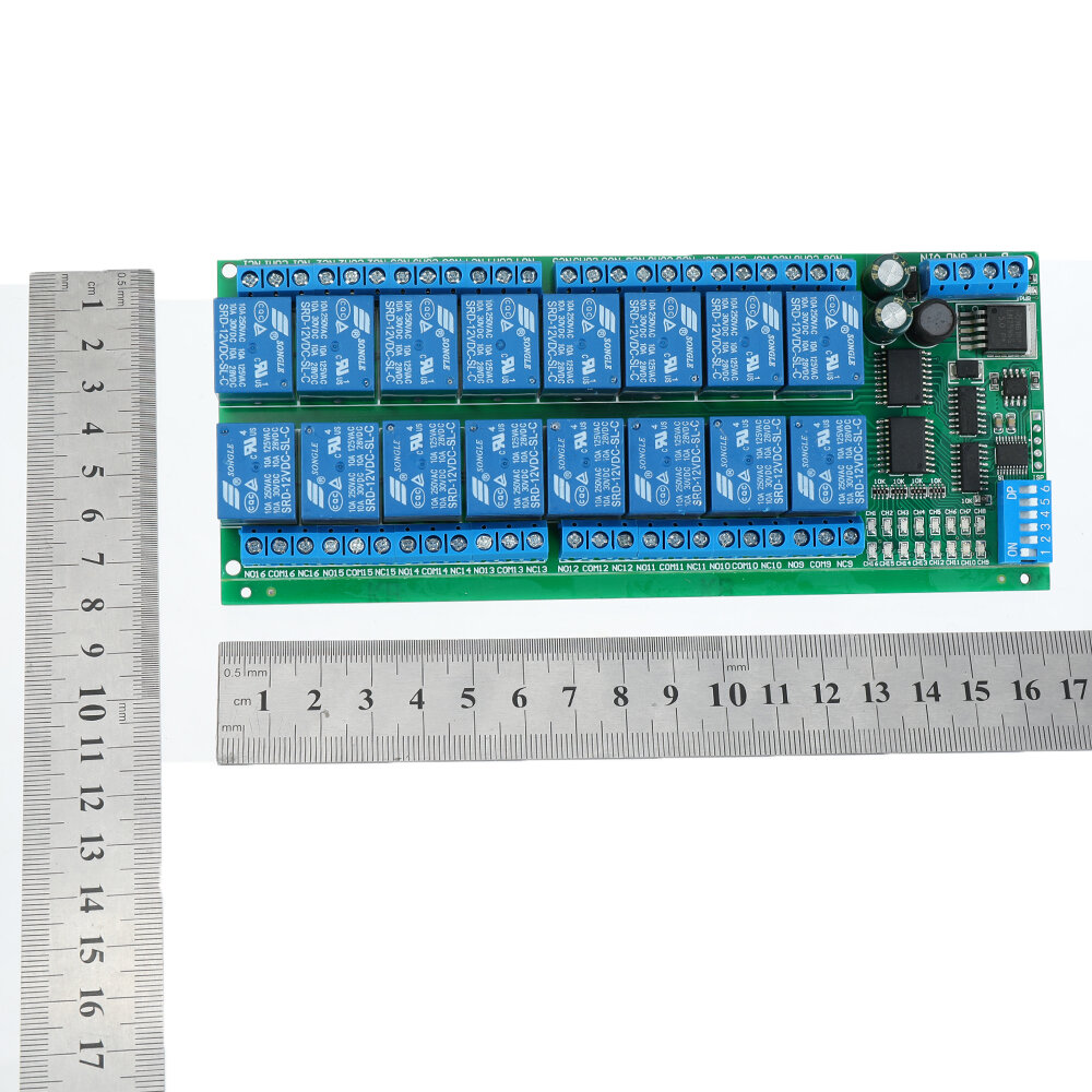 R421B16 16CH DC 12 V RS485 Carte de relais Modbus RTU RS485 Commutateur de telecommande de Bus pour LED moteur PLC PTZ camera maison intelligente quantity