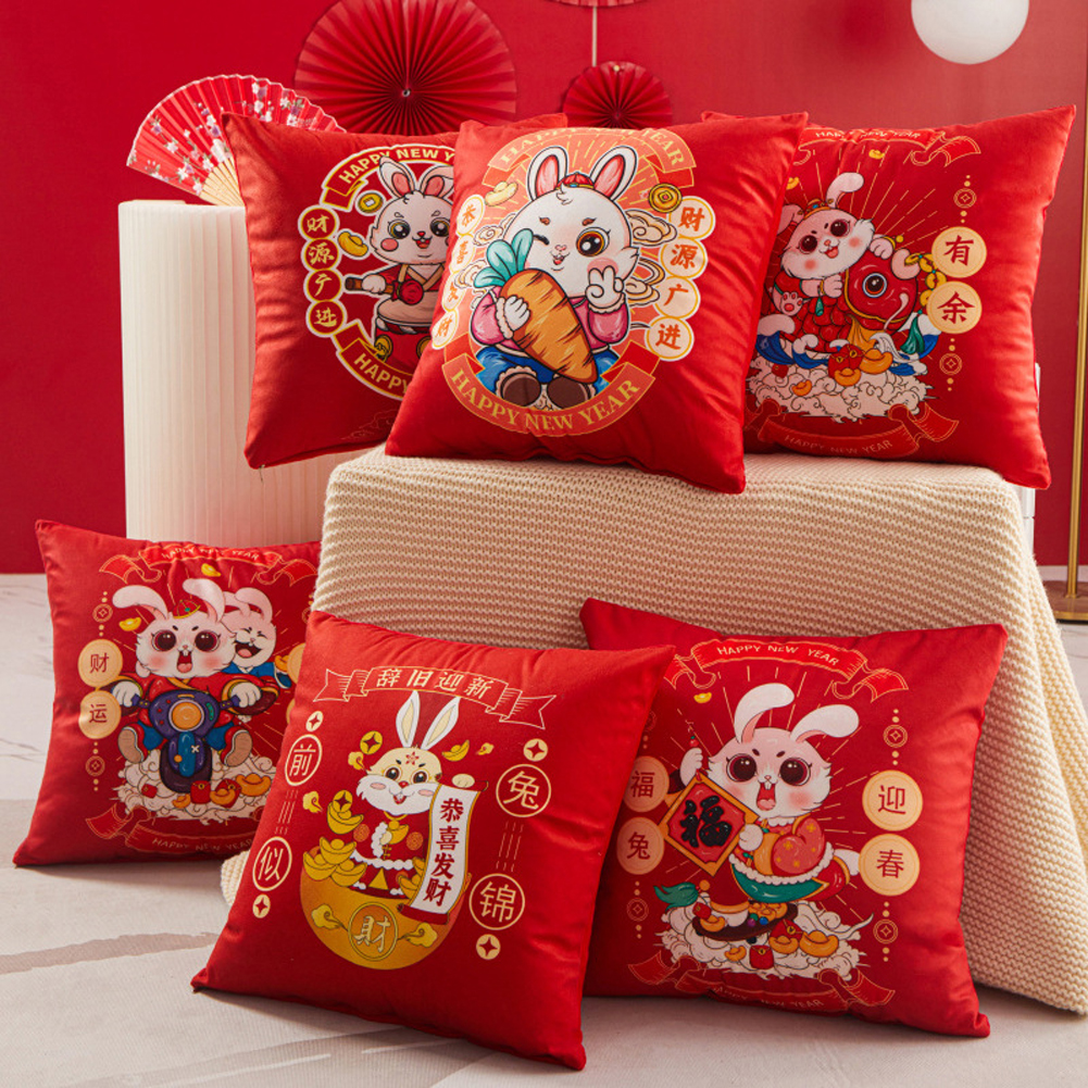 Rabbit Year Pillow Cases Super Soft Colorful Throw Case Covers Chinese New Home Decor F