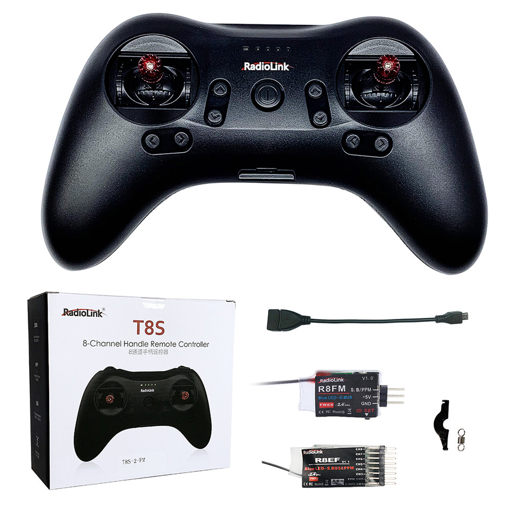 Radiolink T8S FHSS 8CH Bluetooth Version RC Handle Transmitter with R8FM+R8EF 2.4GHz Receiver Support S-BUS PPM for Drone Left-hand throttle
