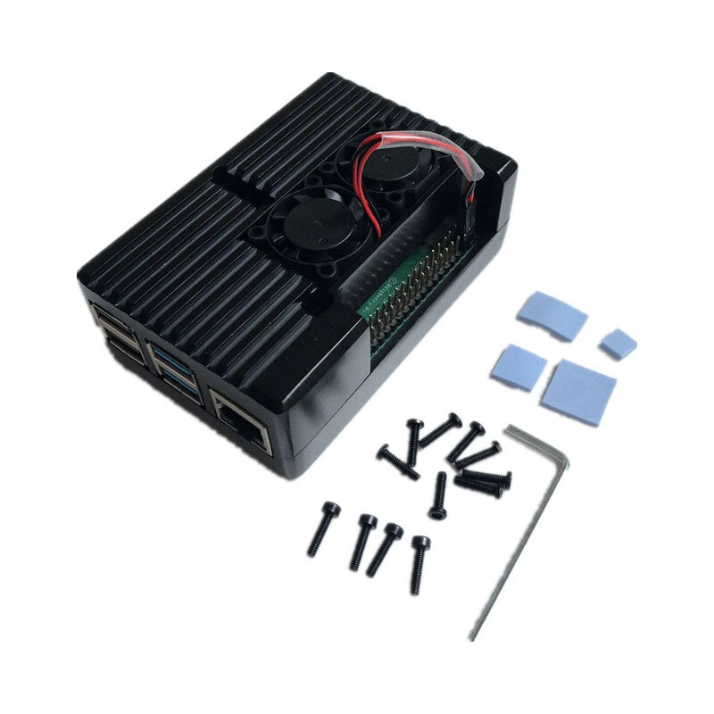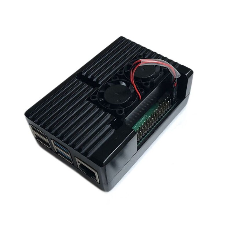 Raspberry Pi 4B coque de refroidissement en metal 4eme generation coque Raspberry Pi 4 carte mere en alliage d’aluminium coque de protection noir avec deux ventilateurs