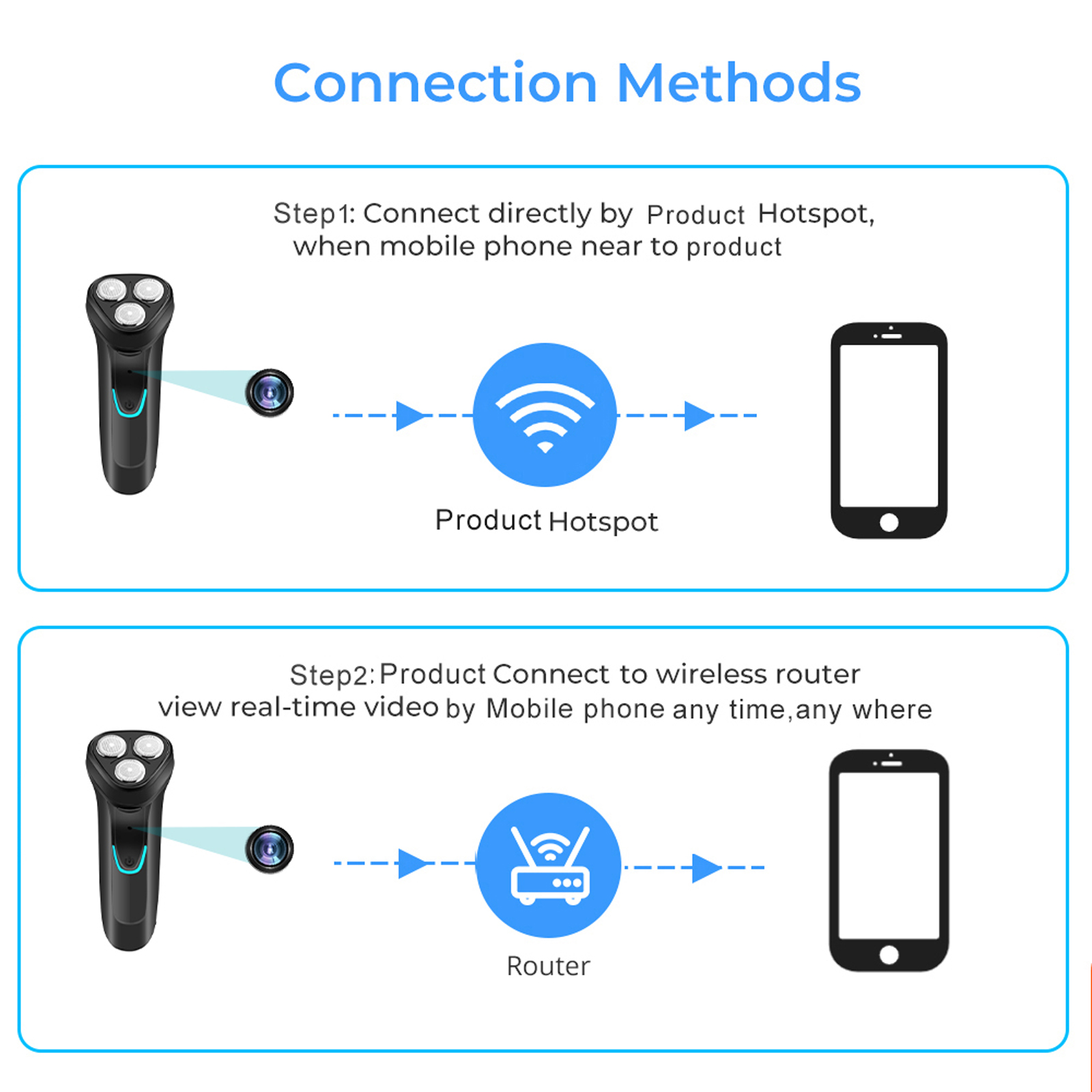 Multifunctional Razor: This device is the appearance of a razor that can shave and can also be used as a miniature camera Others will not easily find that this is a camera, and more exciting things are waiting for you to discover Smartphone Connection: Connect the nanny camera to the router's WIFI, you can access your camera unit remotely Advanced Motion Detection: With motion detection and smart reminder function. 5 million pixels, 1080P resolution, can be viewed remotely through wifi
