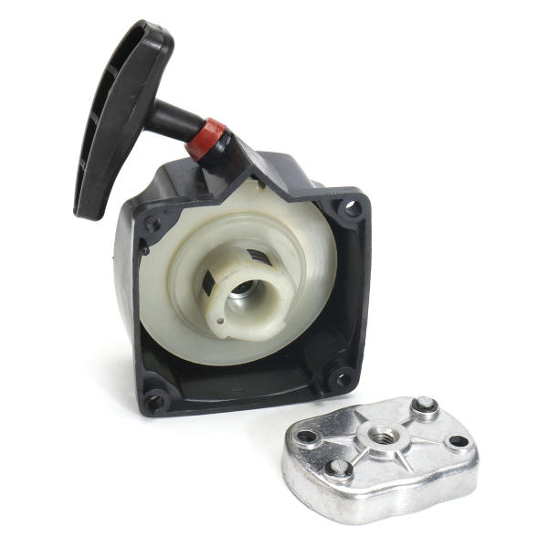 : Easy to operate. For brush cutter strimmer lawn mower scooter. Specification: Material: Plastic Color: Black Pull start Size: 130mm X 85mm Starter Plate Size: 62 X 47mm Starter Plate Thickness: 12mm Fitment: For Komatsu 430 520 Brush Cutter Strimmer Package Included: 1 X Recoil Starter Pull Start 1 X Recoil Easystart Starter Plate