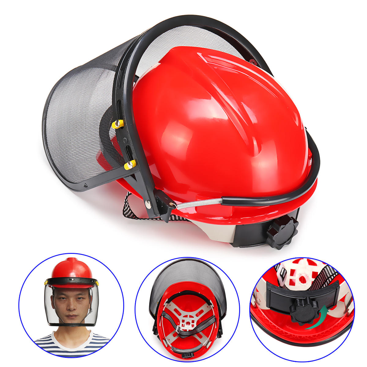 Red Safety Helmet Full Face Mask Chainsaw Brushcutte Mesh For Lawn Mower Trimmer Brush Cutter