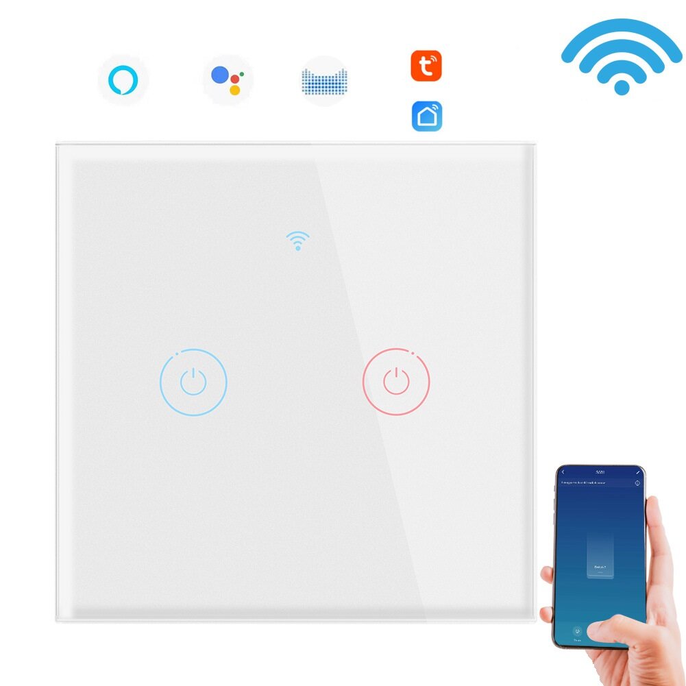 Relais WIFI tactile interrupteur mural intelligent sans fil avec commande vocale intelligente Graffiti avec norme Alexa EU – deux boutons