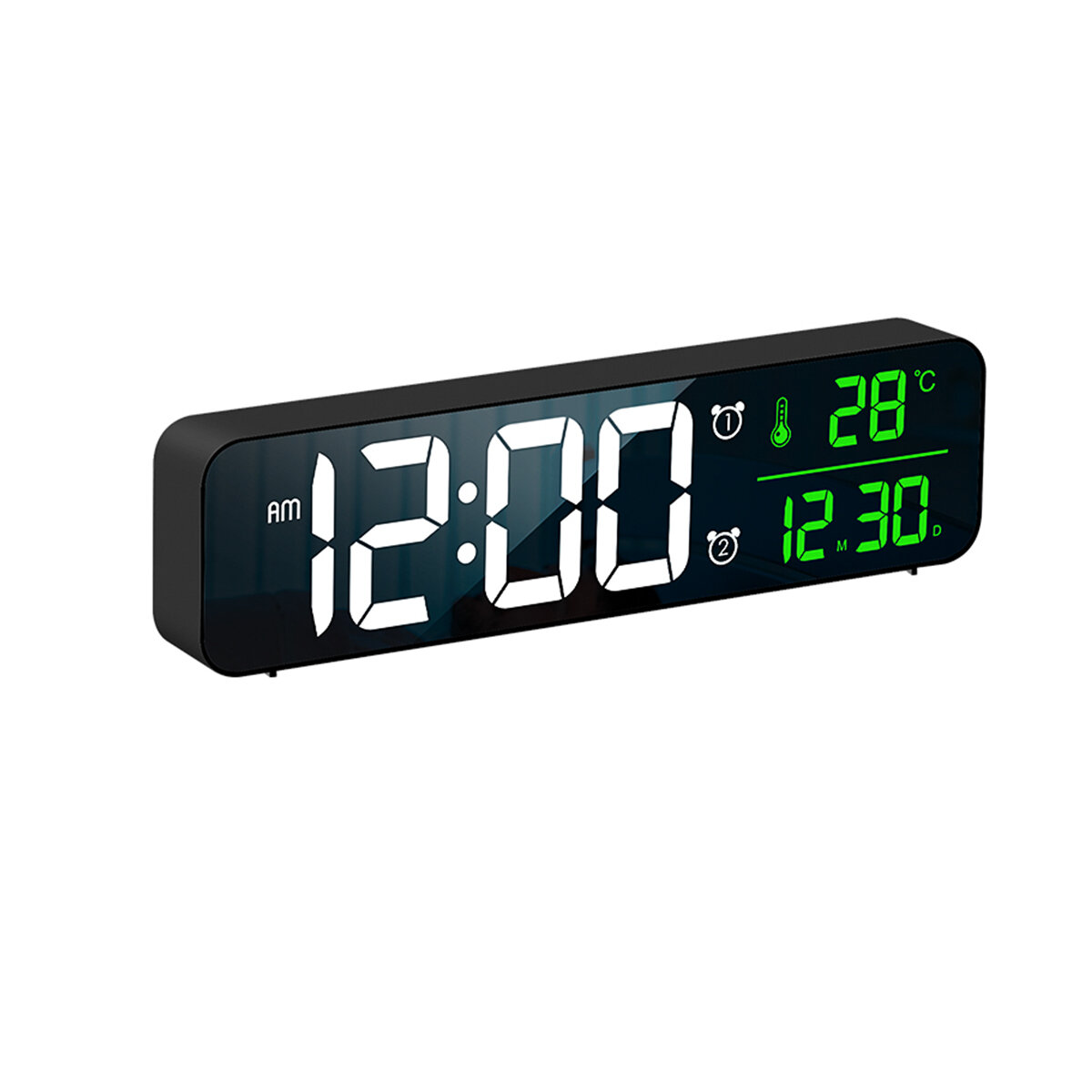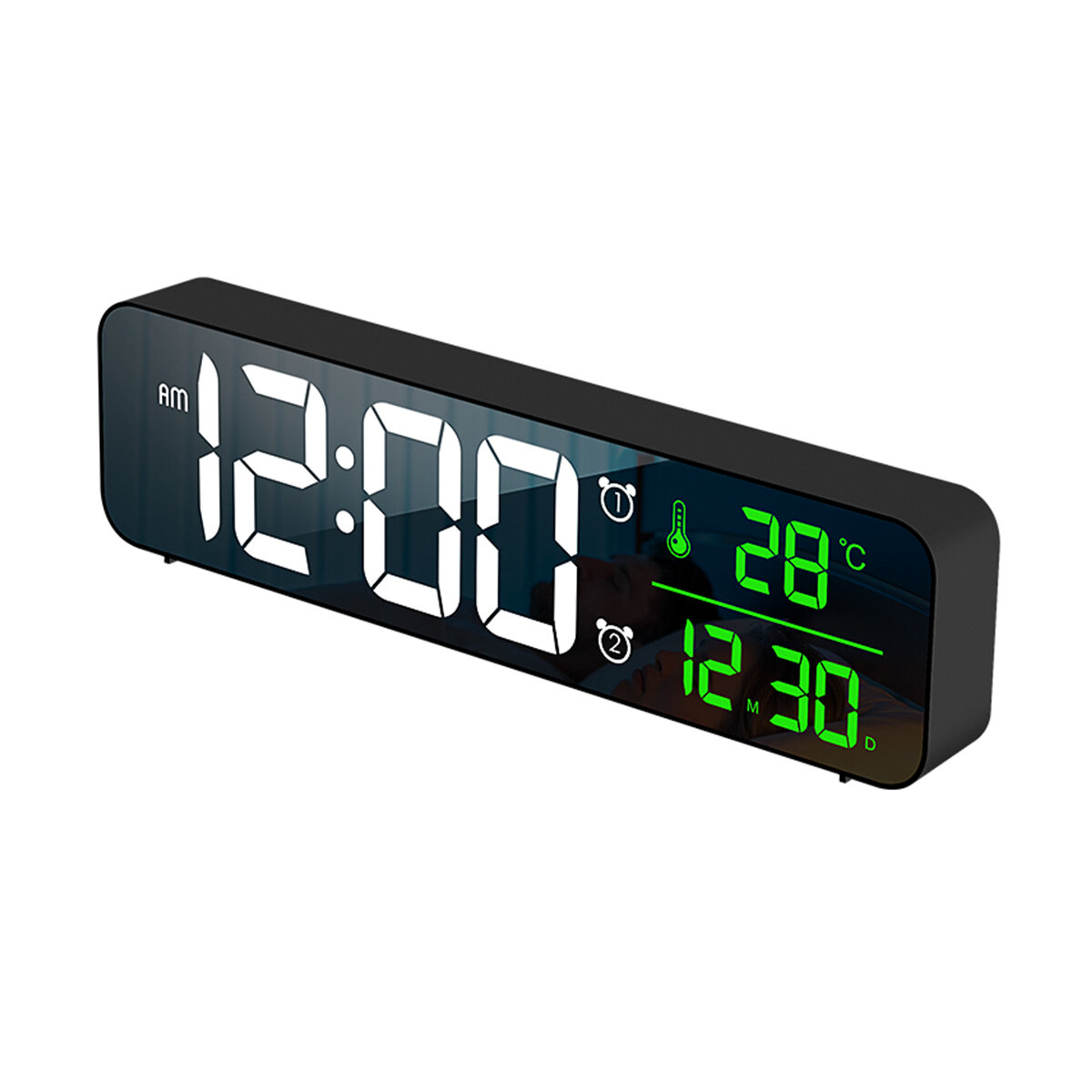 Reveil numerique LED montre filaire pour table de chambre horloge miroir Snooze numerique – Blanc