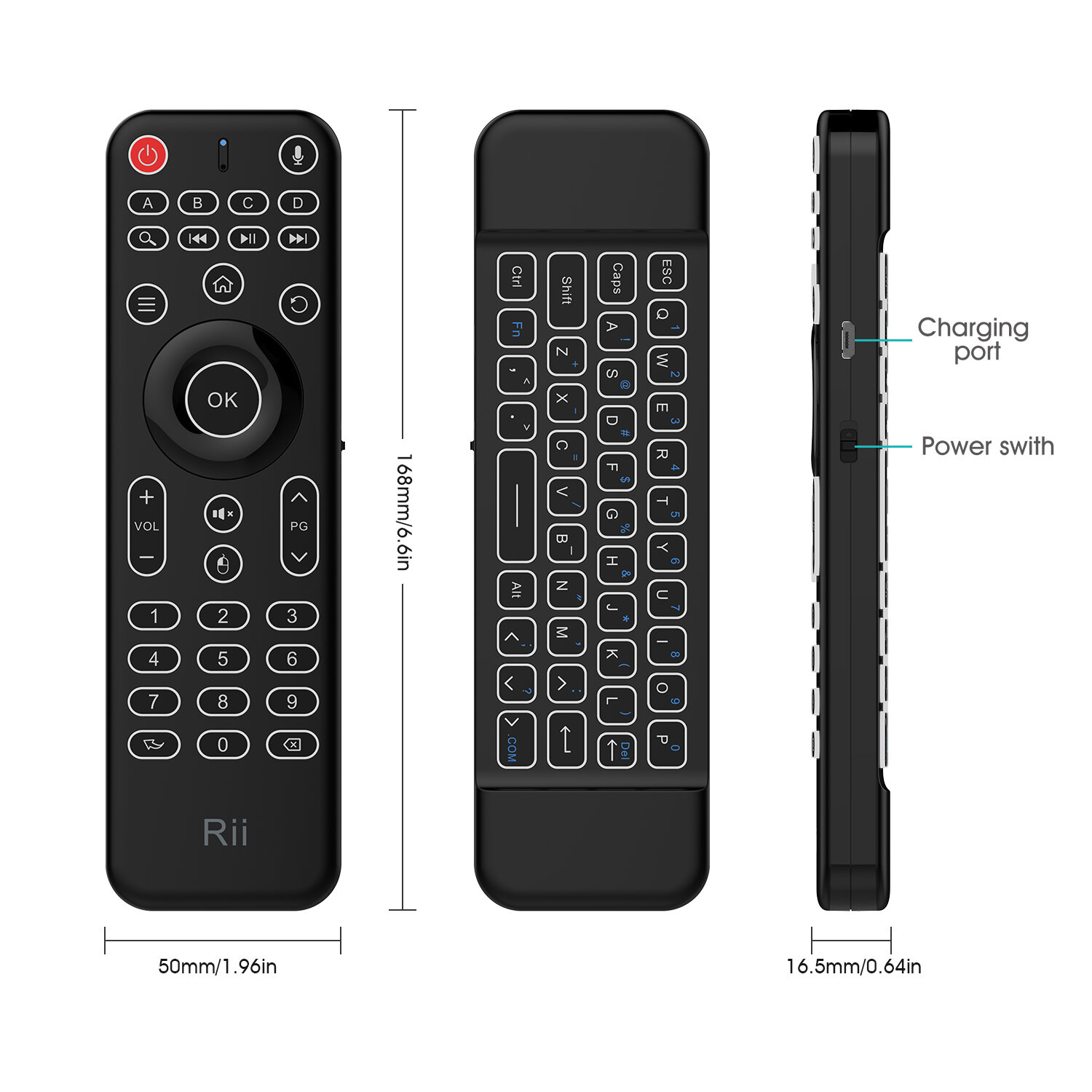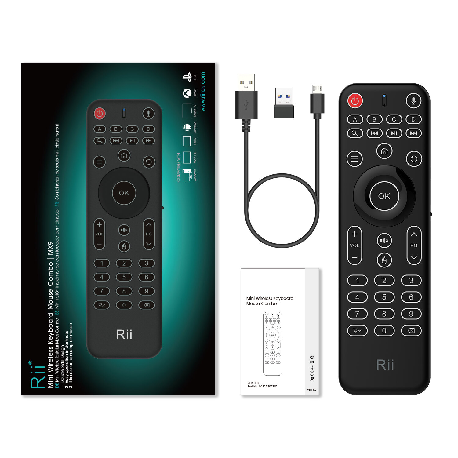 Rii MX9 2.4GHz Mini clavier sans fil Support TV PC ordinateur TV Box retro-eclairage avec Microphone Keyborad pour Xbox Game Console – Noir