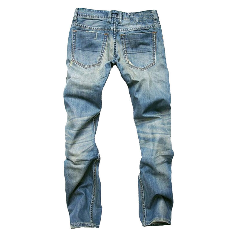 Ripped Fold Stitching Straight Washed Jeans – 30 Blue