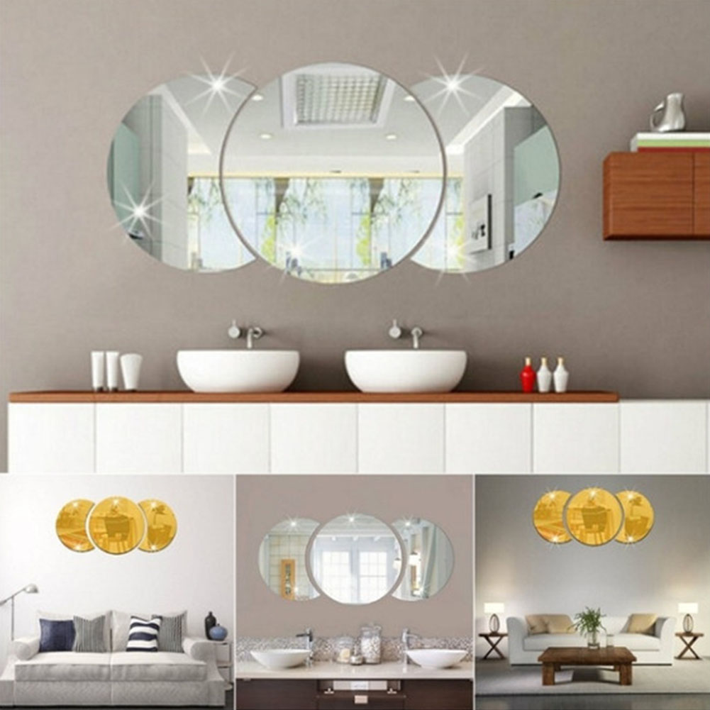 Round Combination Mirror Wall Sticker DIY Decorative Living Room Handwashing Wallpaper Silver