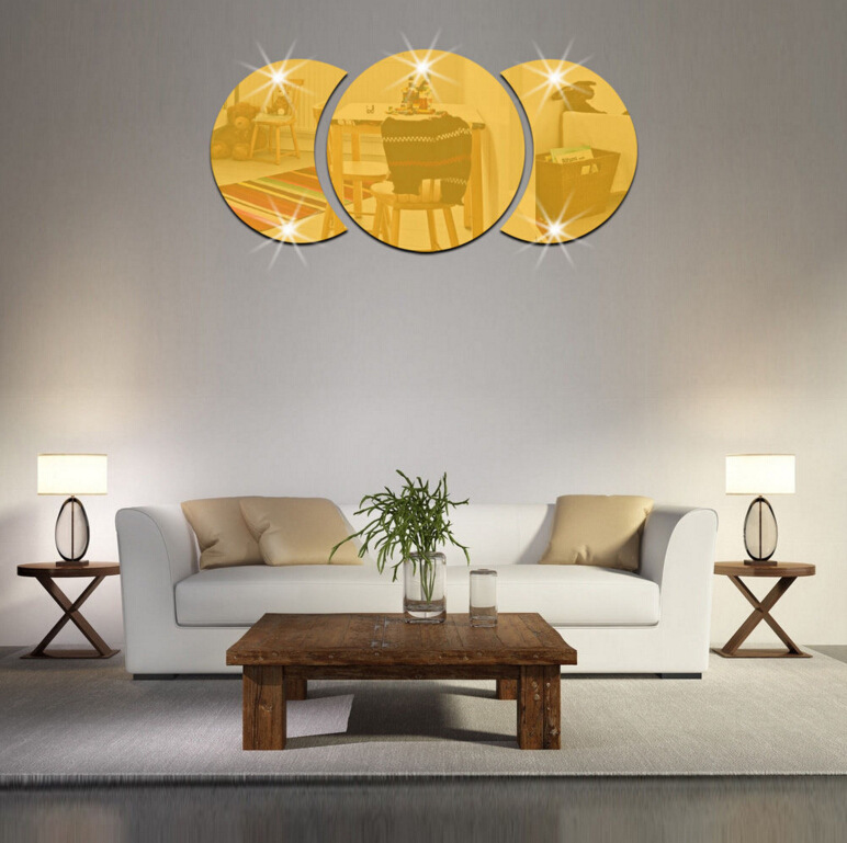 Acrylic material, light weight, nontoxic, eco-friendly, waterproof, corrosion resistant. Fashion and modern round combination mirror wall sticker, you can DIY what you like. Perfect for TV setting wall, Sofa setting wall, dining room, bedroom, door, wardrobe and so on. Simple but not tedium, all show fashion atmosphere elegant quality of life. Close up is exactly the same as a mirror, and objects at a distance (two meters away) can be slightly blurry.