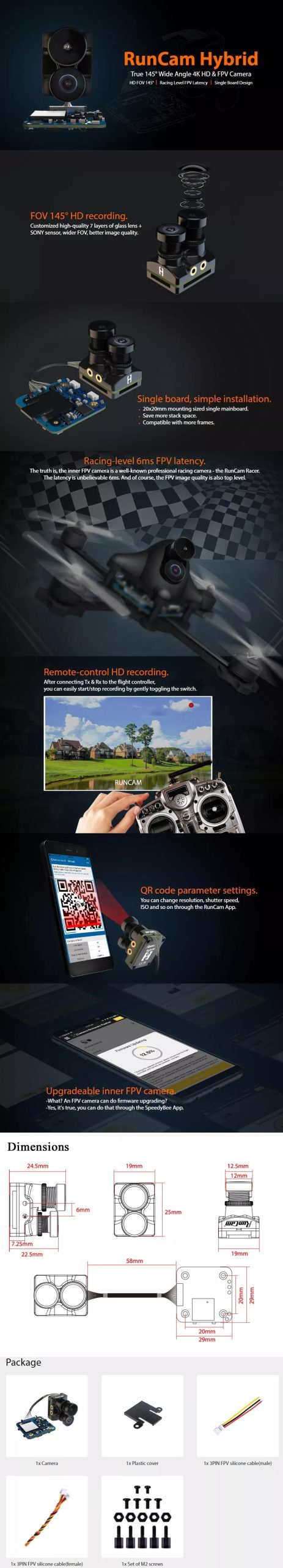 RunCam Hybrid 4K 30fps FOV Camera 145 Degree HD Recording DVR Dual Lens Mini FPV Low Latency Single Board for RC Racing Drone