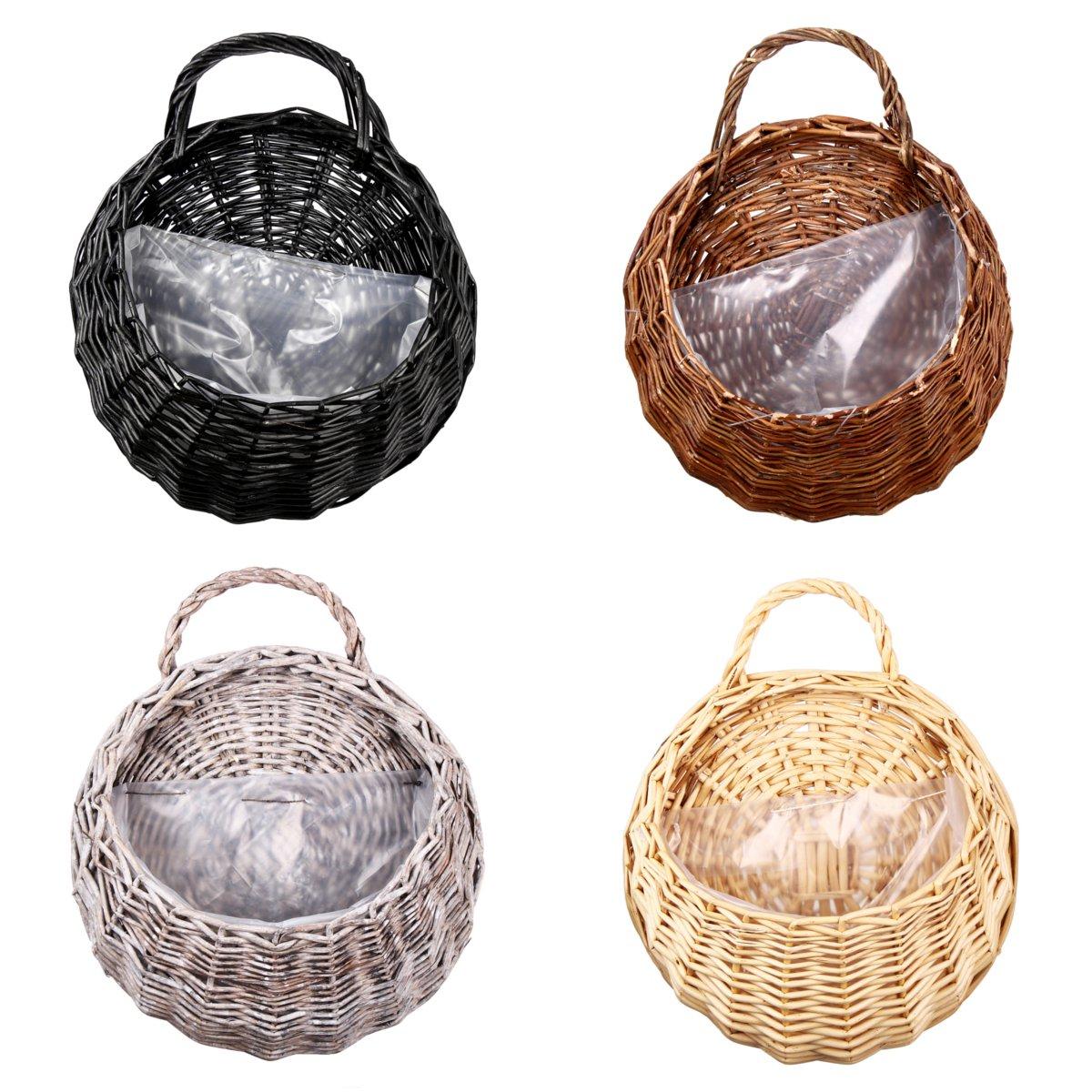 Rustic Wicker Rattan Wall Hanging Flower Baskets Pot Home Balcony Wedding Decor Gift – Black