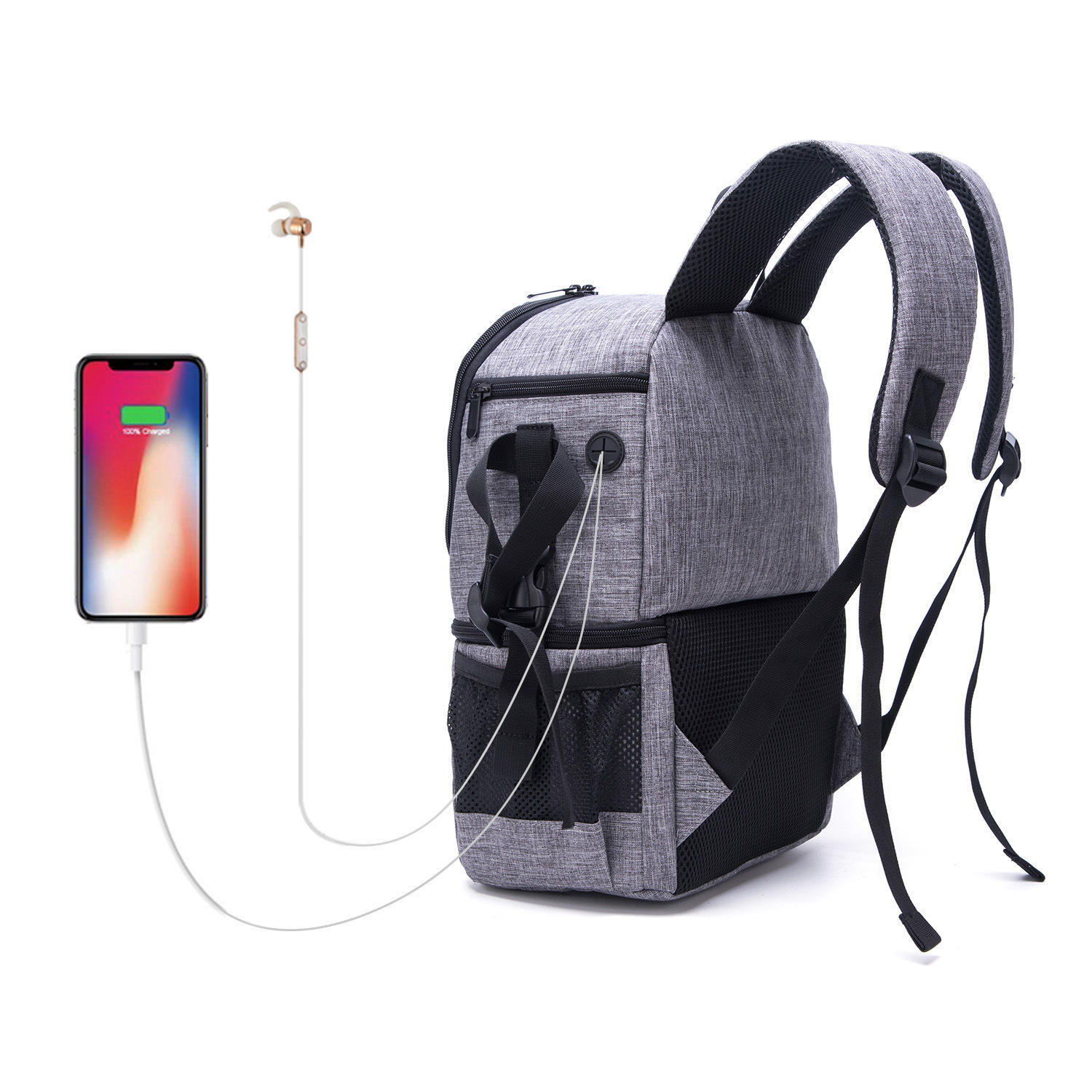 Sac e dos pour appareil photo antivol resistant e l’eau, trou pour ecouteurs de charge pour trepied d’objectif d’appareil photo reflex numerique – Noir